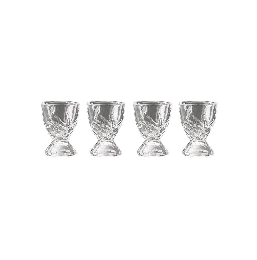 Dessa ägghållare är tillverkade av vackert facetterat glas, vilket ger ett utsökt kristallutseende. Ägghållarna bidrar till att skapa en elegant och enkel skandinavisk dukning.
