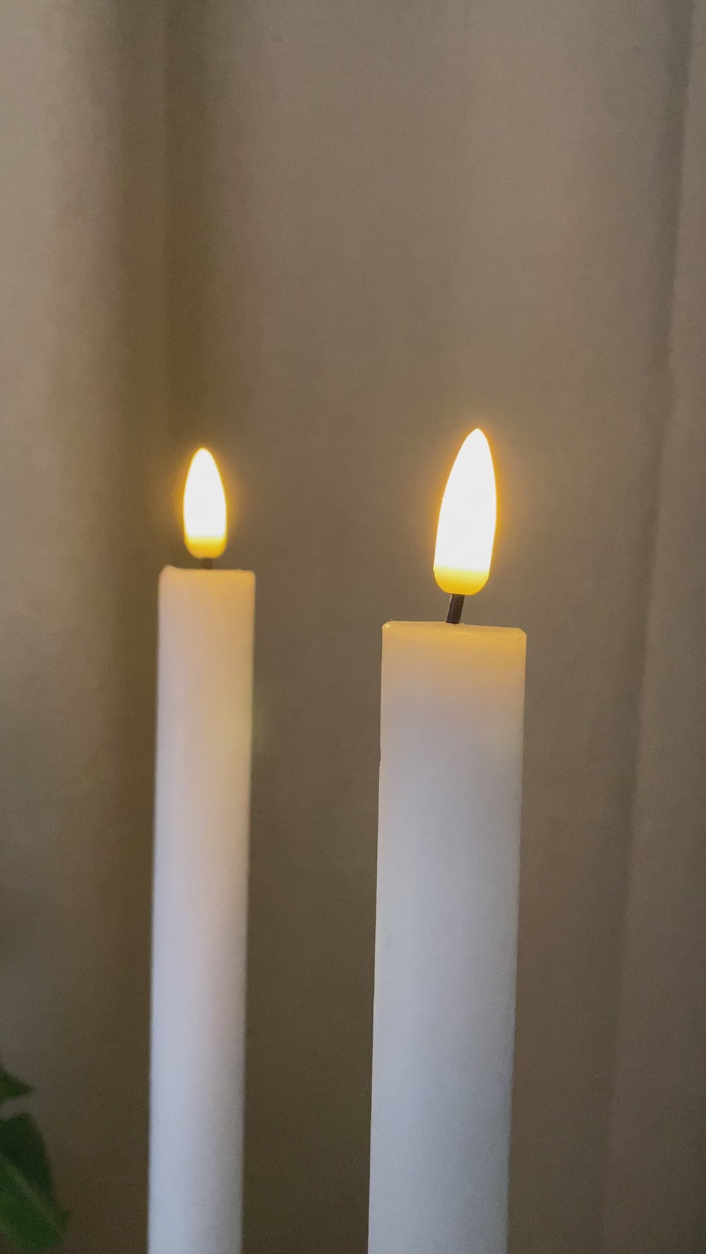 Skapa en mysig atmosfär i ditt hem med dessa smarta LED-ljus. Ljusen är tillverkade av vit plast belagd med vax så att de ser ut som riktiga ljus. Ljusen använder 2 AAA-batterier per ljus. Multifunktionsfjärrkontroll kan köpas till