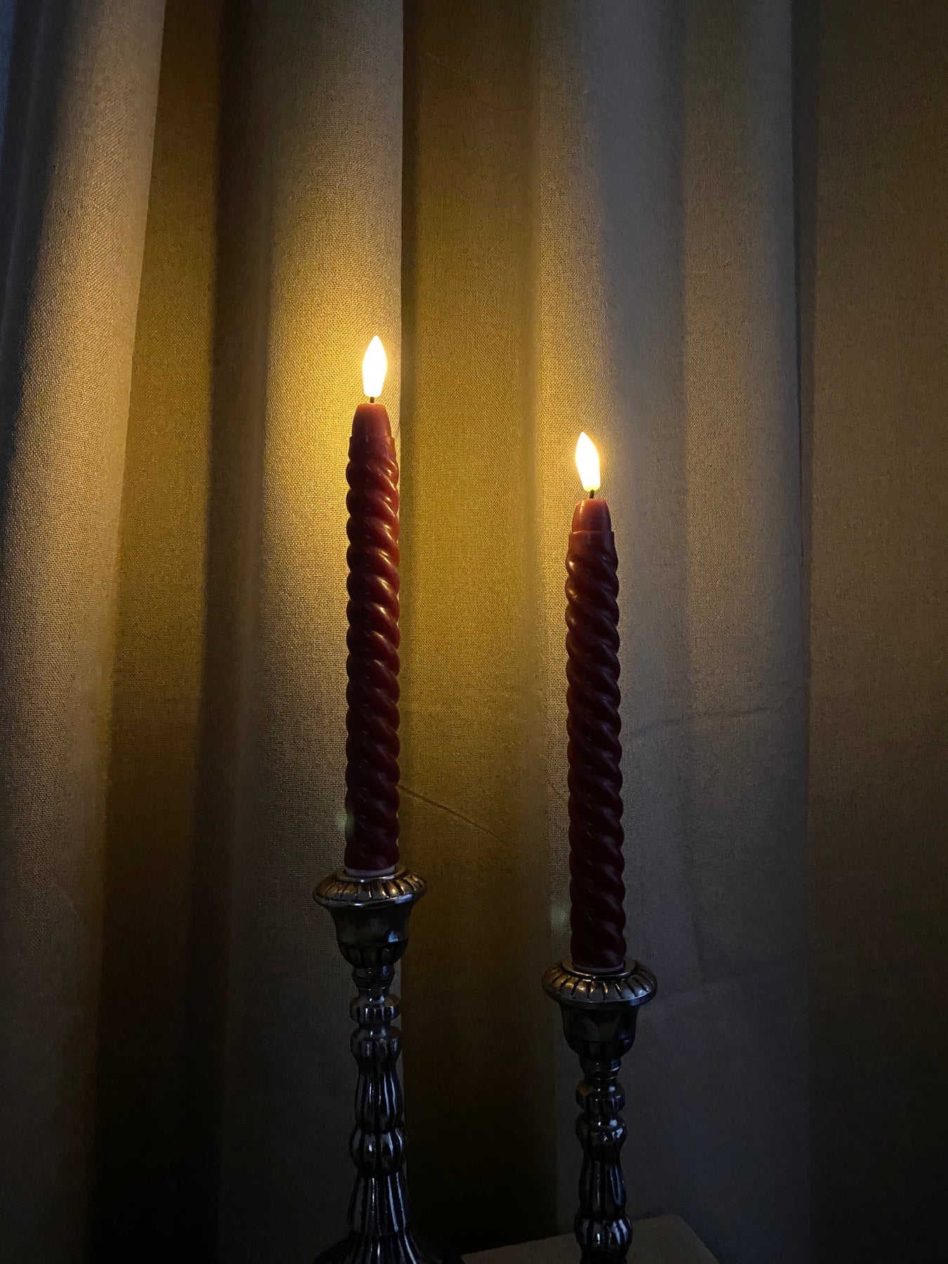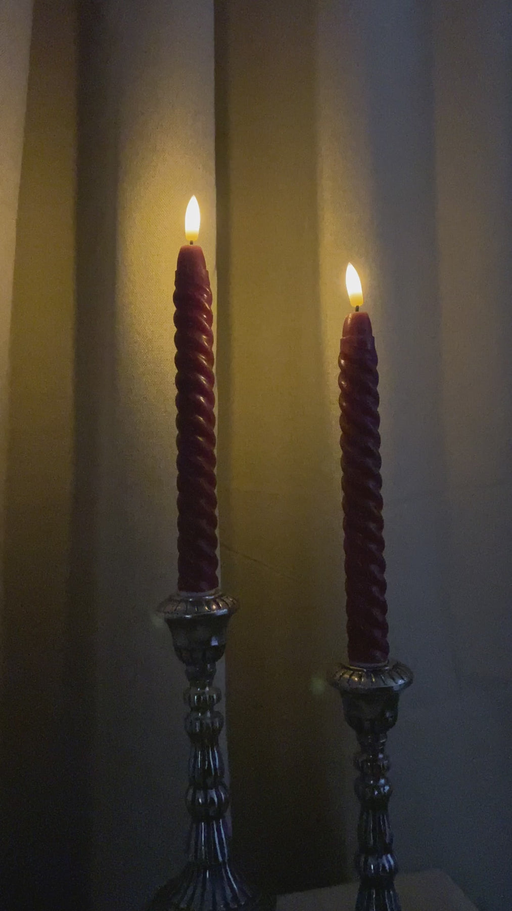 Ingen rök, sot eller brandrisk! LED-ljusen skapar en mysig atmosfär och är särskilt lämpliga om du har små barn eller husdjur, eftersom du undviker risken för brand. De vackra tvinnade ljusen har en höjd på 24 cm. Ljusen är tillverkade av plast belagd med rött vax så att de ser ut som riktiga ljus. Ljusen använder 2 aaa-batterier vardera.