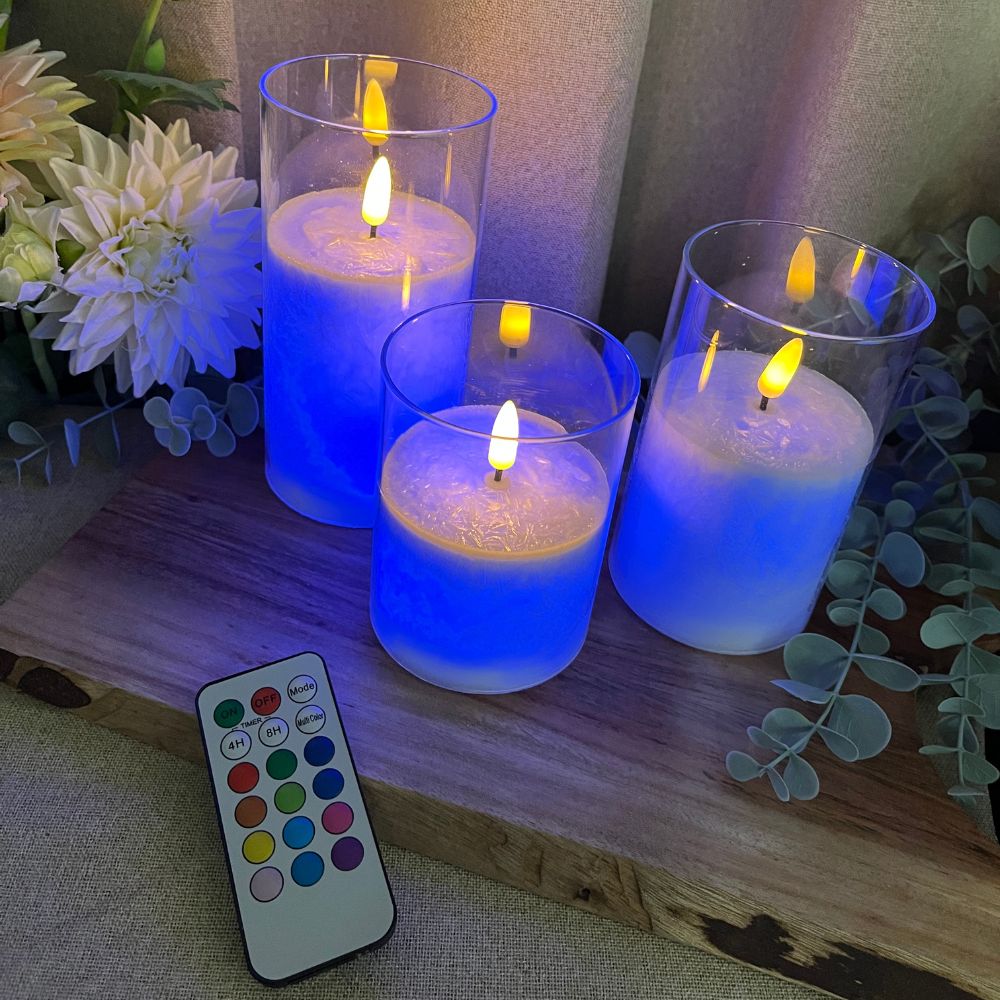 LED-cylinderglas 3 st. flerfärgad - med fjärrkontroll