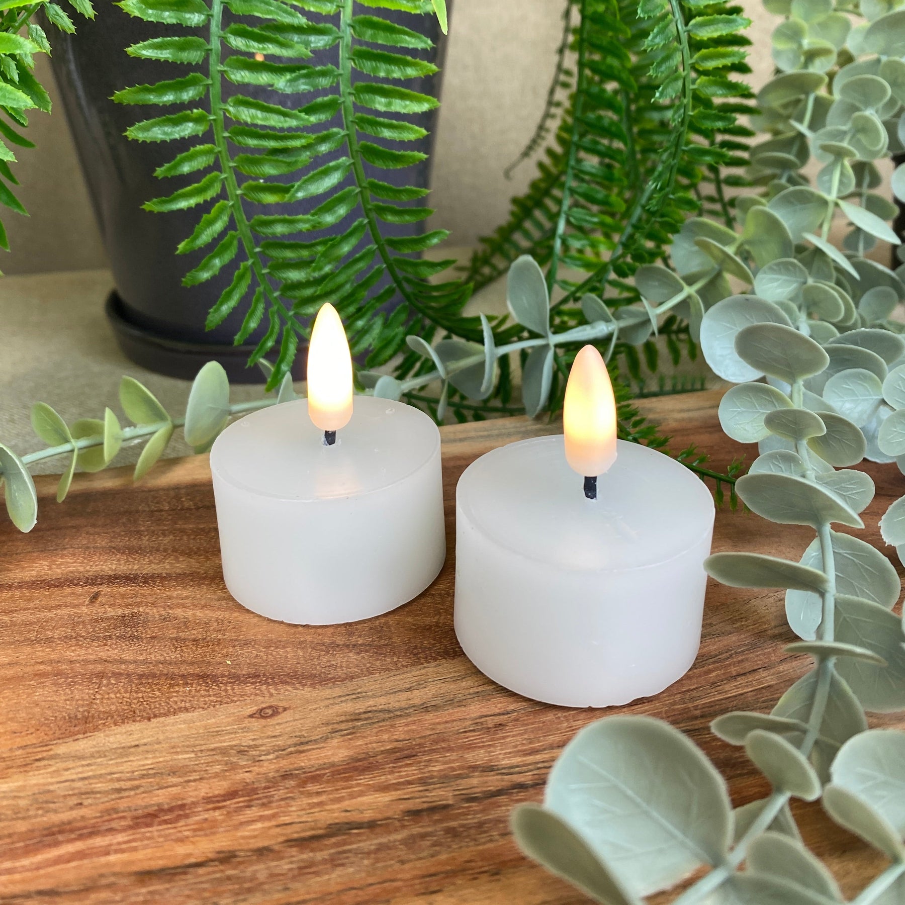 • 2 st LED-värmeljus med realistisk 3D-låga
