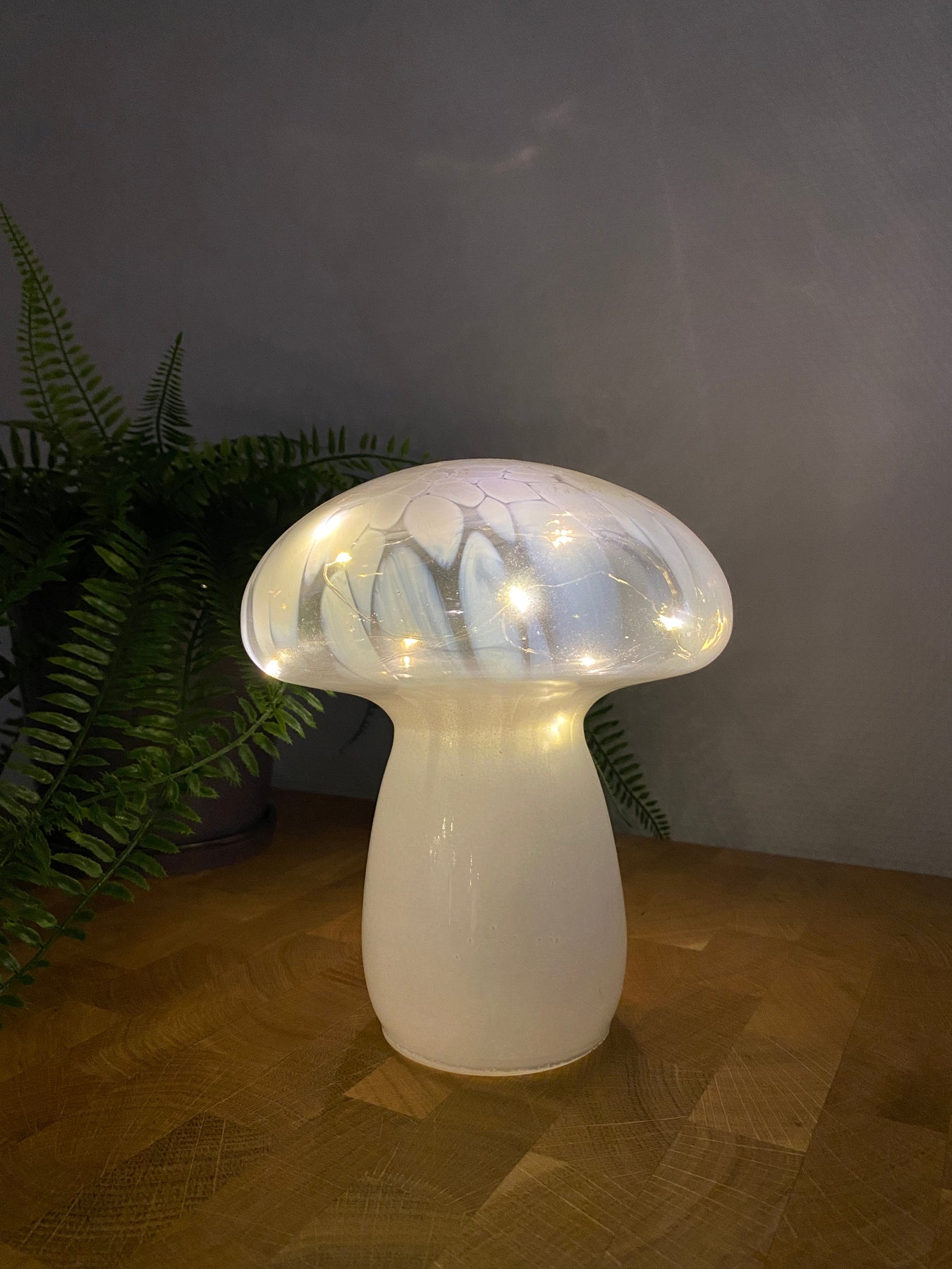 Denna LED-paddsvamplampa av vitt glas med en diameter på 17 cm är ett charmigt och stämningsfullt belysningsalternativ som ger ditt hem en magisk touch. LED-paddsvampljuset kombinerar funktionalitet med en unik och dekorativ design som skapar en mysig atmosfär.