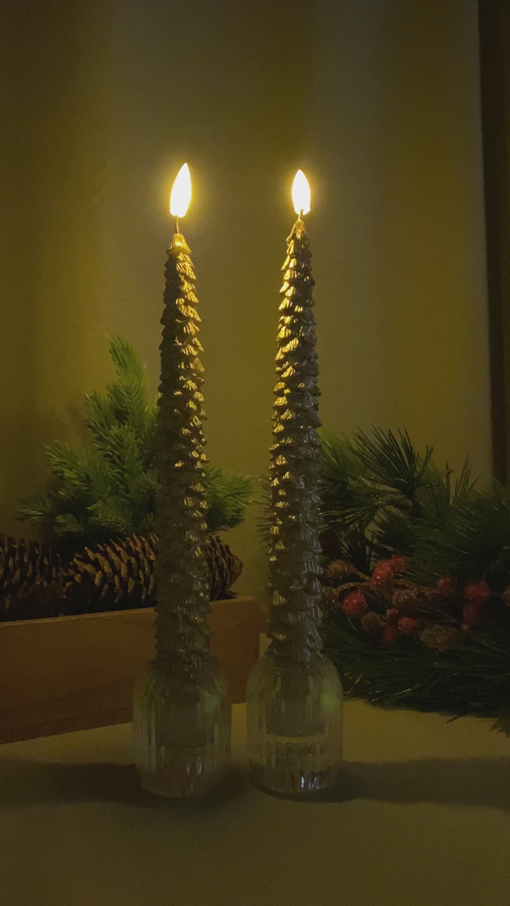 Skapa en exklusiv och varm julstämning med dessa vackra LED-ljusstakar i guldvax . Ljusen har en realistisk 3D-låga som rör sig som en riktig eld och sprider ett mysigt sken - helt utan rök, sot eller brandrisk.