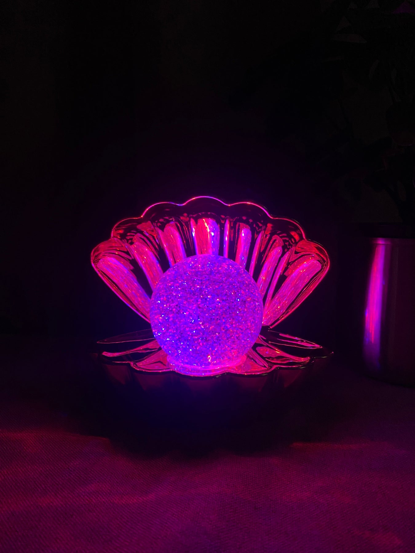 Tillför en touch av glamour och äventyr med denna vackra mussleformade glitterlampa i gyllene design. När den är tänd sprider lampan glittrande effekter och varma toner – perfekt för att dekorera vardagsrummet, sovrummet eller på presentbordet.