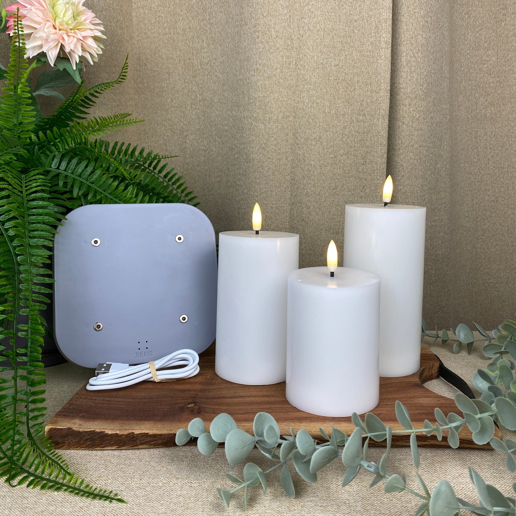 Blocklamporna är laddningsbara och levereras med en praktisk laddningsplatta, vilket eliminerar behovet av batterier och gör användningen både enkel och miljövänlig. LED-lamporna ger ett mjukt och varmt sken, vilket skapar en mysig och stämningsfull atmosfär i hemmet. Perfekt för jul, vinterkul och året runt.