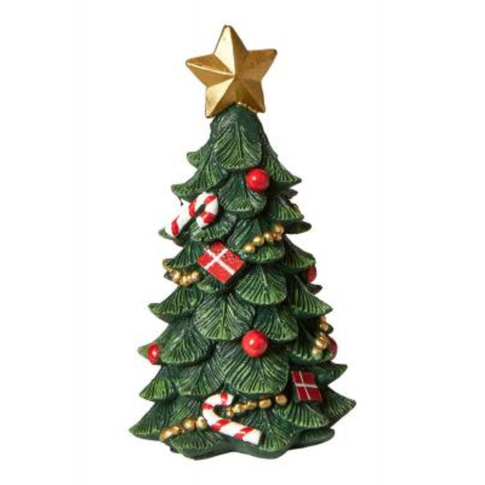 Denna fina julgransfigur i mörkgrön polyresin är dekorerad och redo att sprida julstämning i ditt hem. Med sin kompakta höjd på 15 cm passar den perfekt på bordet, i fönsterbrädan eller på hyllan och kan kombineras med andra juldekorationer för en mysig och festlig look. Robust material säkerställer att figurinen kan användas år efter år som en klassisk del av din juldekoration.