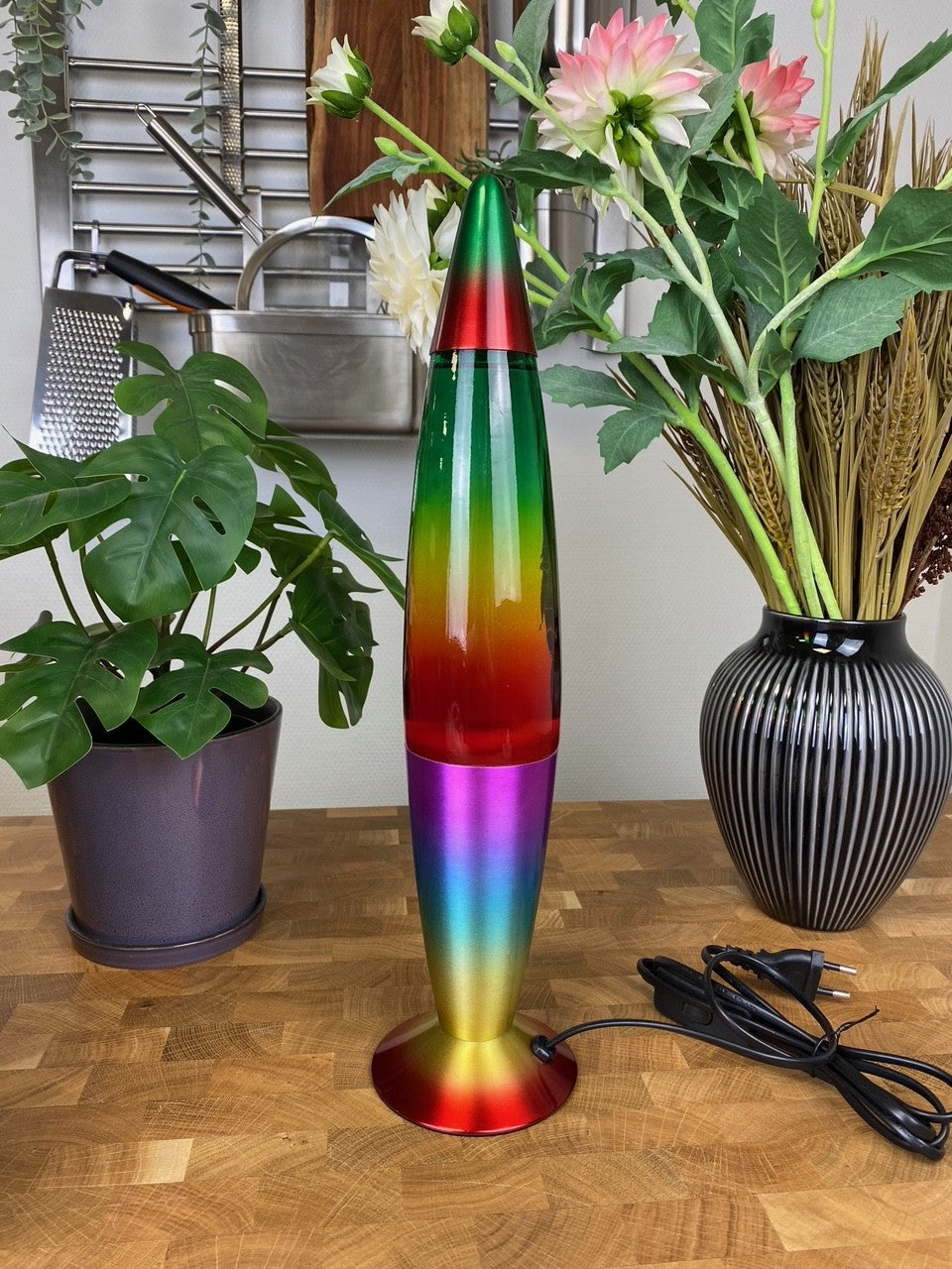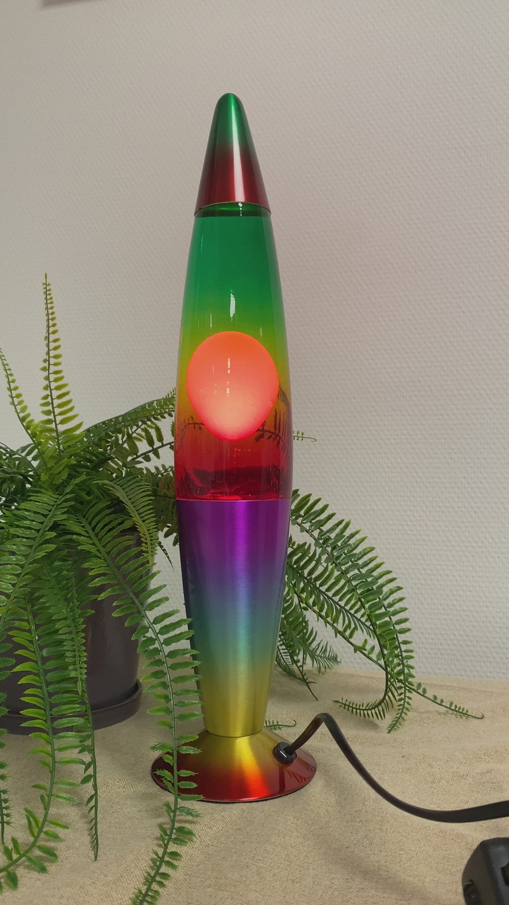 Gör ditt hem ännu mer levande med denna spektakulära lavalampa i regnbågens färger. Med sin fascinerande färgskiftande effekt och tidlösa design är denna lavalampa det perfekta tillskottet till alla rum där du vill skapa en avslappnad och atmosfärisk atmosfär.