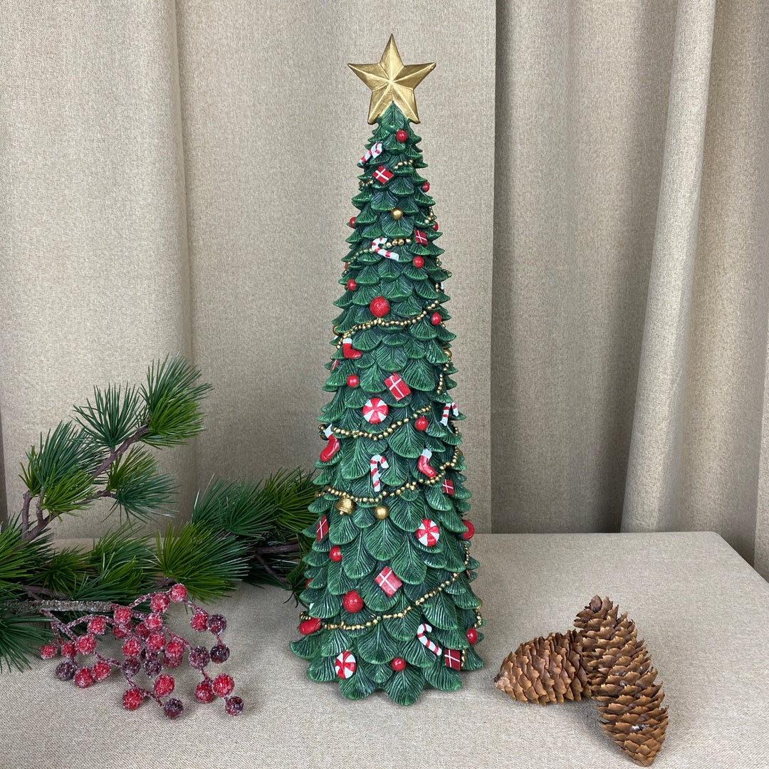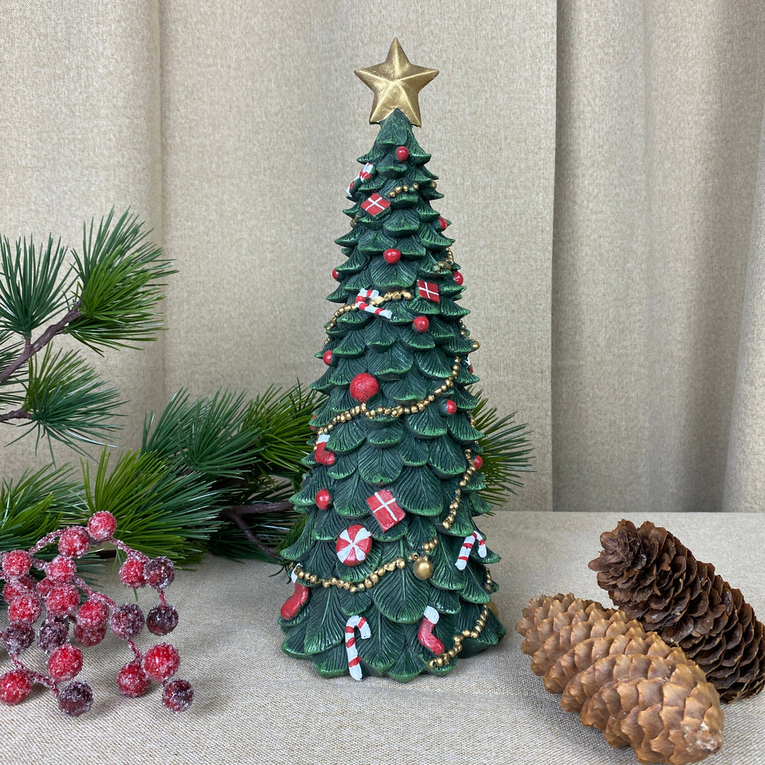 Julgran med dekorationer 33 cm polyresin mörkgrön