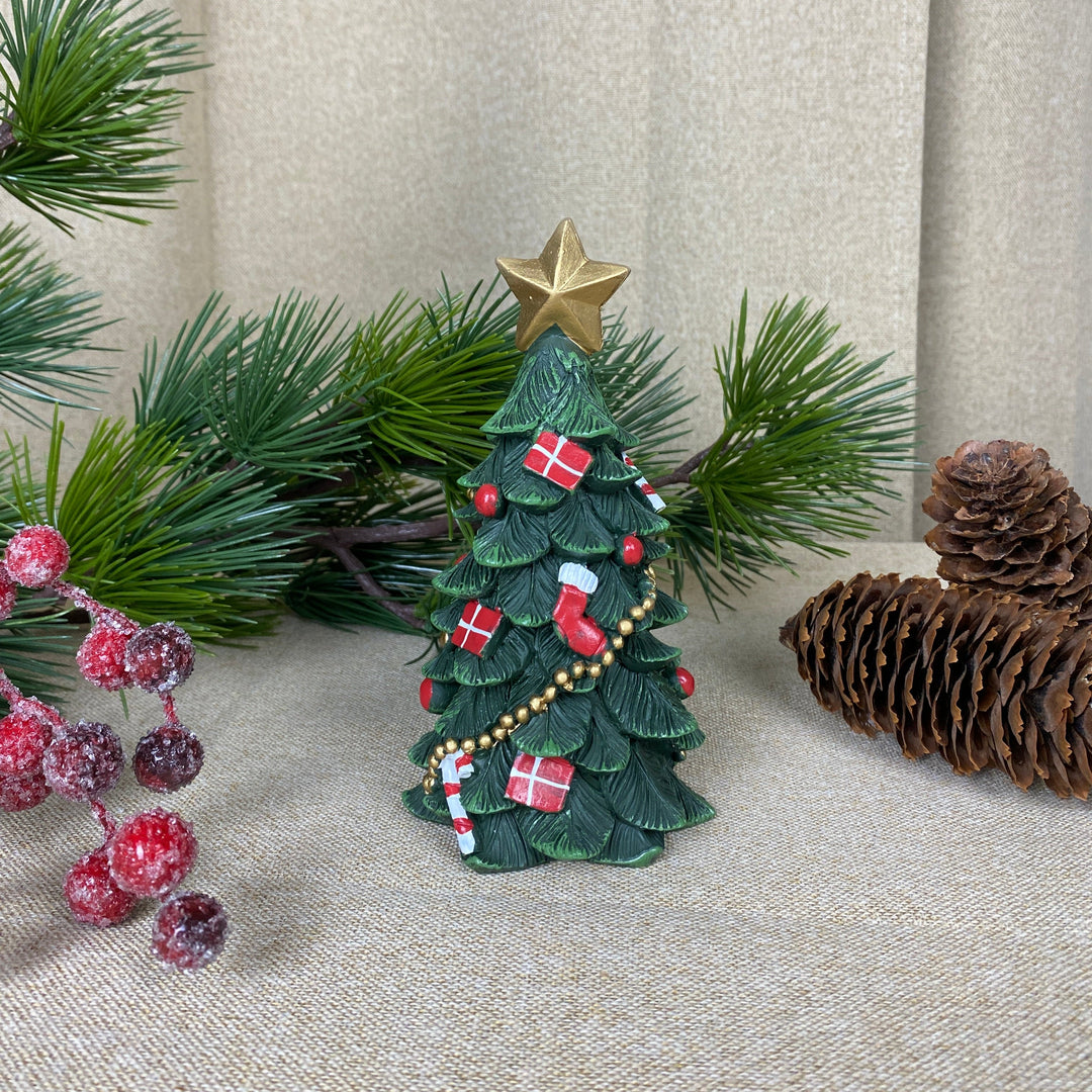 Julgran med dekorationer 15 cm polyresin mörkgrön