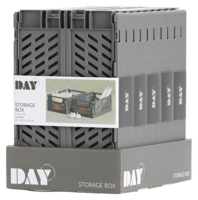 Day förvaringslåda i mörkgrå färg, som levereras i en uppsättning om 2, har måtten 25x16,5x10 cm och erbjuder ett elegant och praktiskt sätt att organisera dina tillhörigheter. Dessa förvaringsboxar från Day är designade med estetik, funktionalitet och hållbarhet i åtanke.