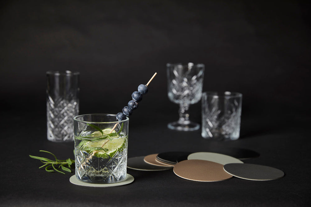 Här hittar du glasunderlägg, som är en funktionell utrustning till matbordet. Namnet talar för sig självt, det är små tallrikar som skyddar bordet mot varma rätter eller kastruller. Du kan därför ställa en tallrik lasagne på bordet utan att den går in och skadar bordet. En väldigt enkel och smart lösning som nästan alla har hemma.