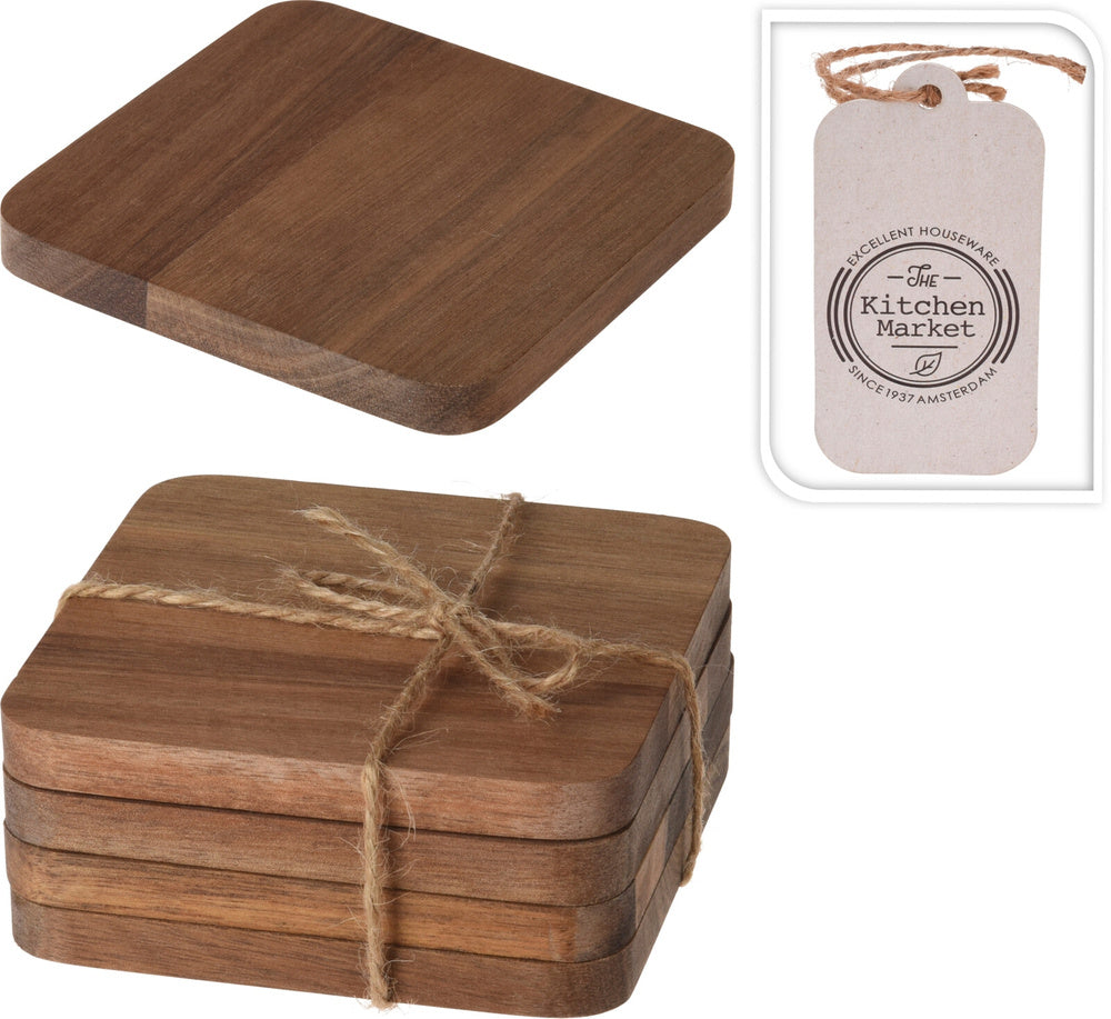 Bricka med rutmönster - akaciaträ