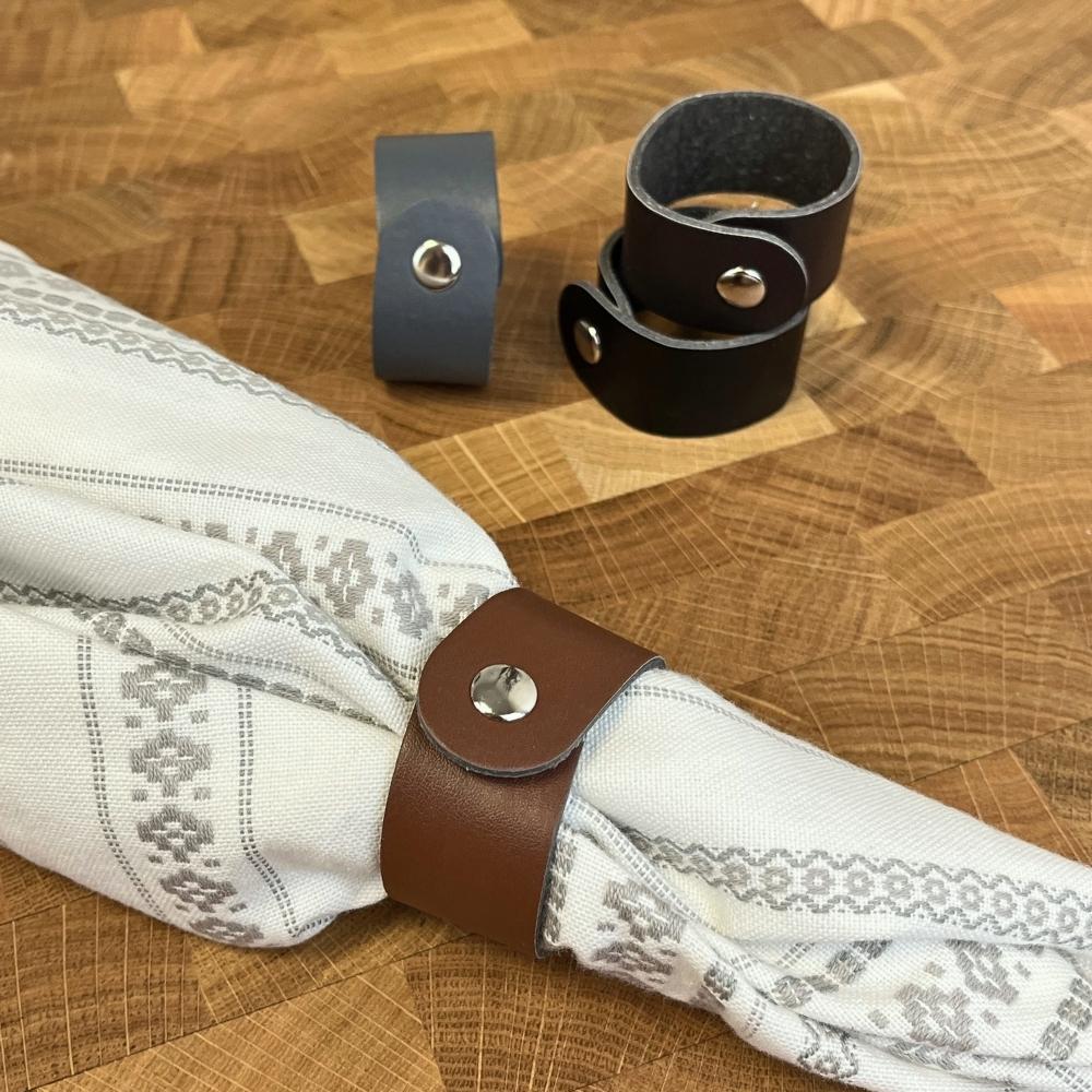 Vackra servettringar från Dacore som skapar en rå och modern look i din dukning. De är tillverkade av återvunnet läder och har en vacker brun färg.
