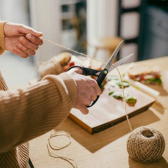 Fiskars universella sax från Functional Form ReNew-serien kombinerar hållbarhet och funktionalitet. Saxen är gjord av återvunnet material (min. 70%) och ger dig optimal komfort och precision för alla klippuppgifter hemma. Med starka blad av återvunnet rostfritt stål (~80%) får du långvarig skärpa och exakta snitt varje gång. Det ergonomiska handtaget är designat i en blandning av återvunnen plast och glasfiber, vilket ger ett säkert och bekvämt grepp. Saxen tillverkas även på Fiskars miljöcertifierade fabrik i Finland, färdigställd och testad för hand och levereras i plastfri, återanvändbar förpackning.