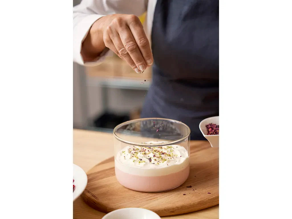 • Skål i klart borosilikatglas