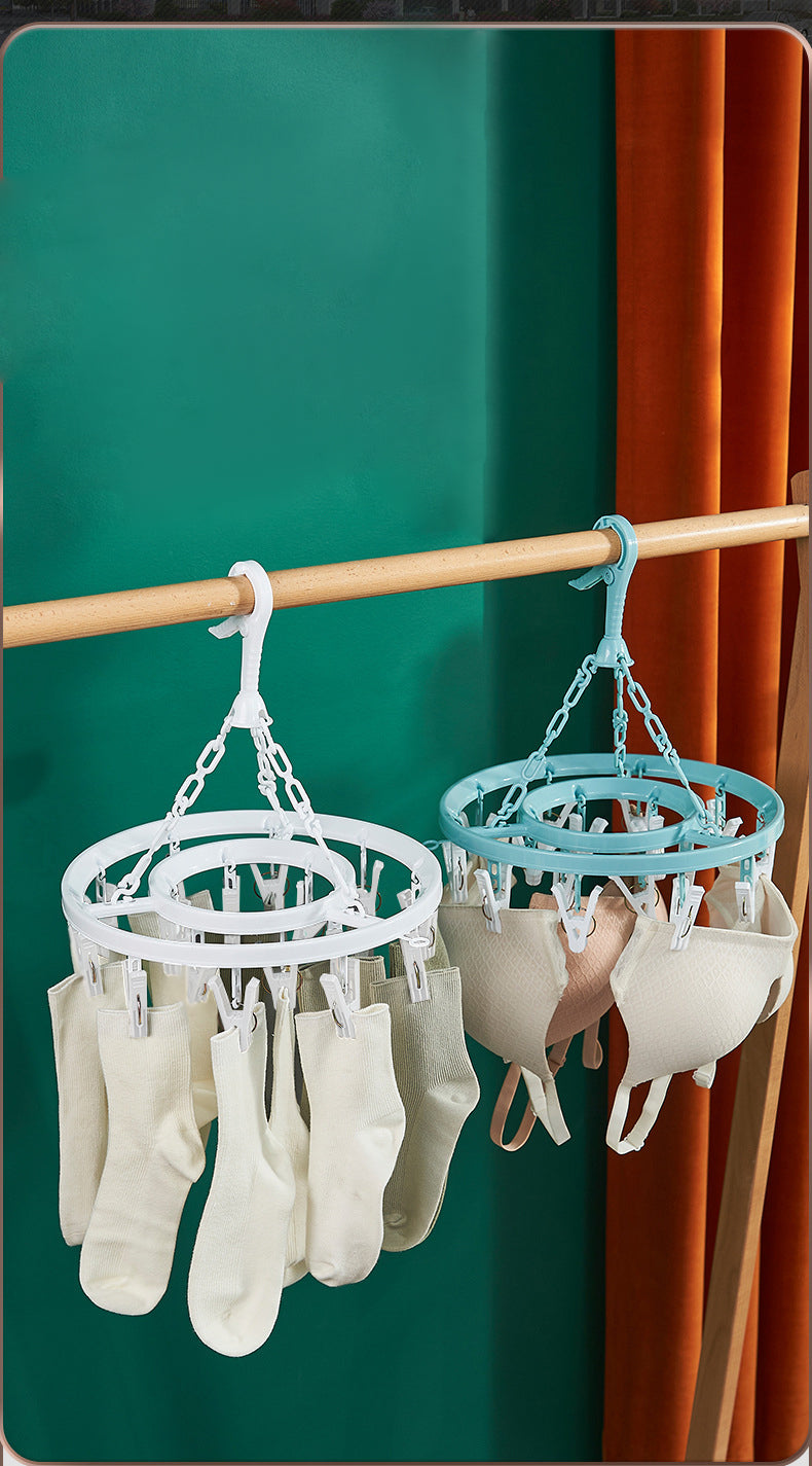 Torkstället har en diameter på 33 cm och är utrustat med 18 klämmor, vilket ger gott om utrymme för att hänga och torka kläder. De slitstarka klämmorna håller kläderna säkert på plats så att de inte glider eller faller av under torkningen.
