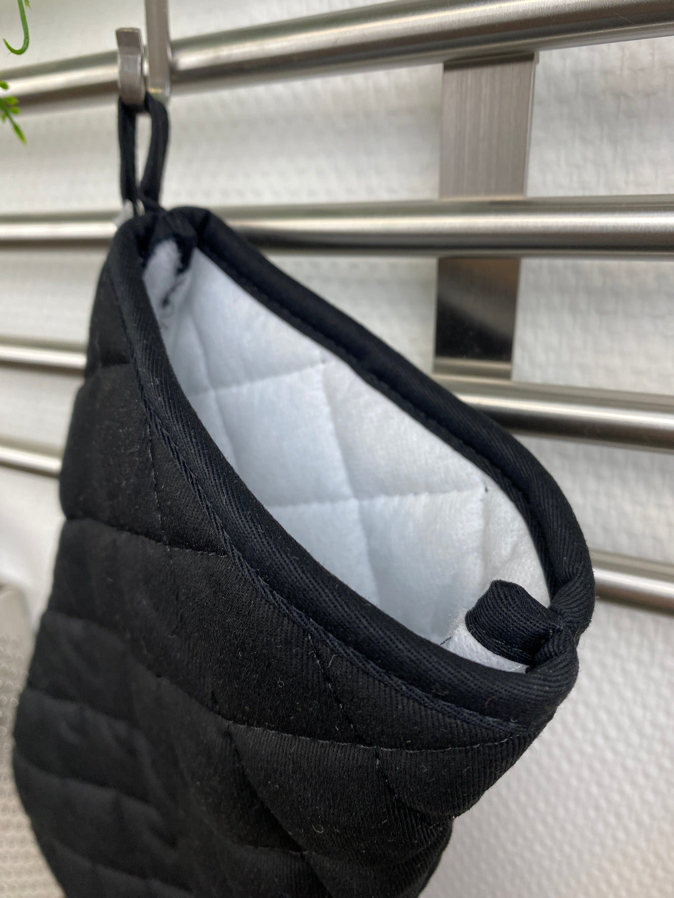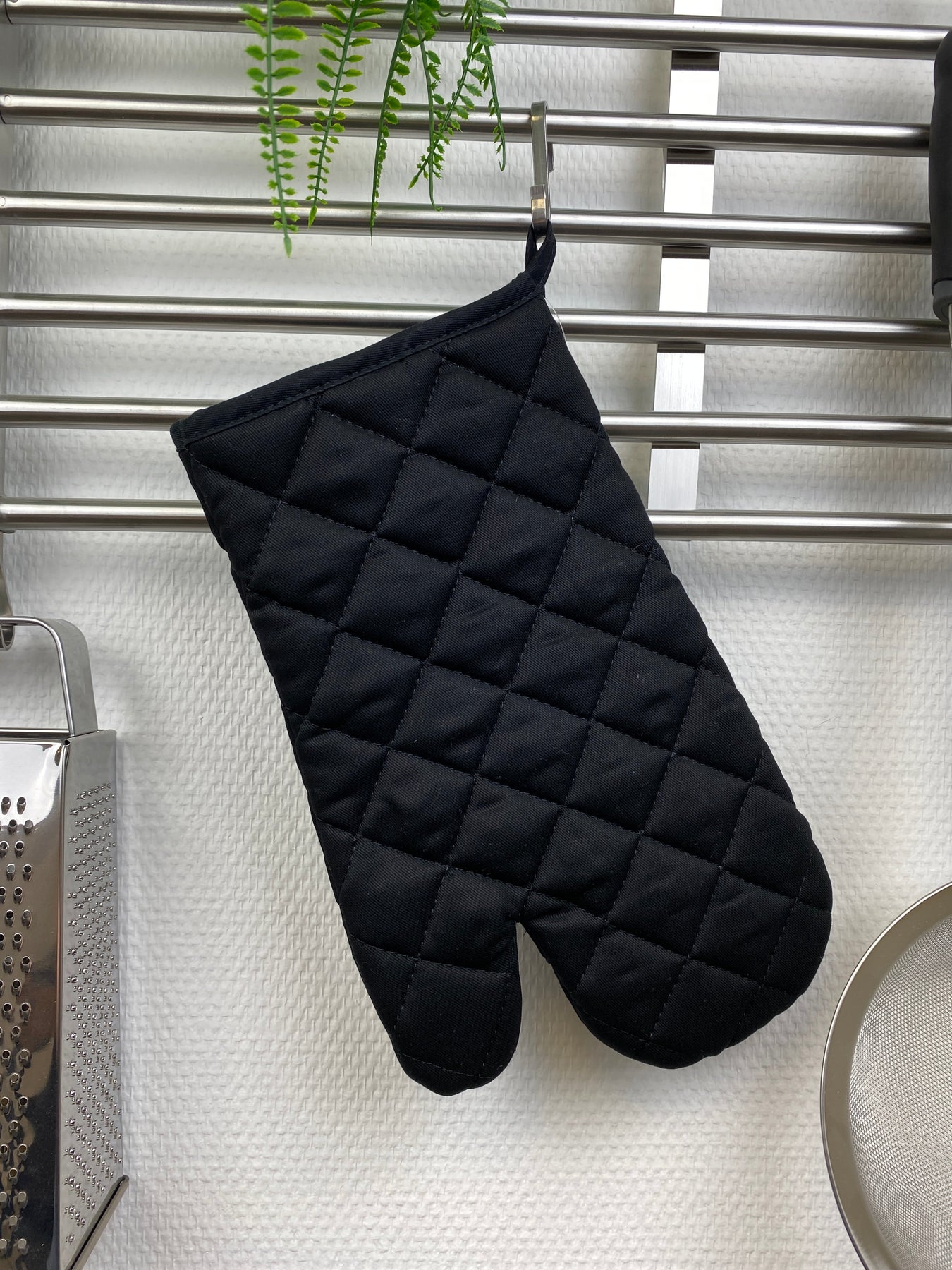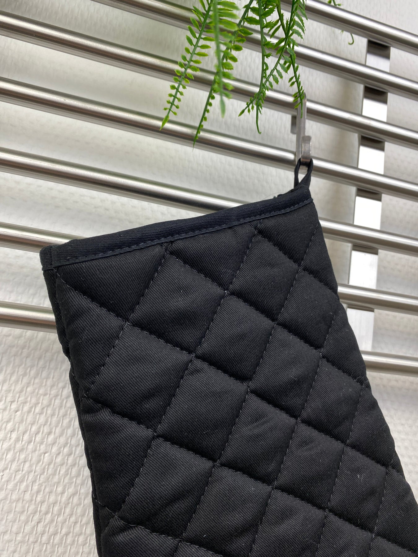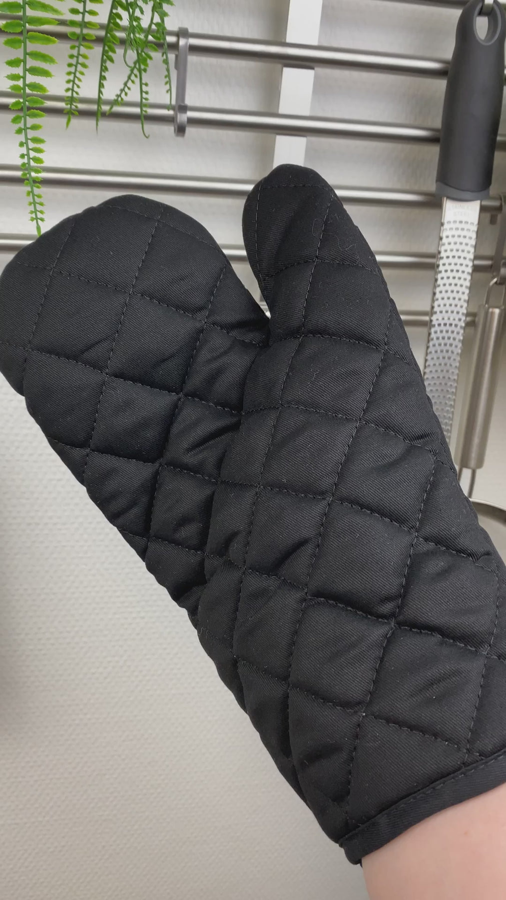 En praktisk och slitstark grillhandske i klassisk svart, perfekt för både matlagning och grillning. Handsken skyddar dina händer från värme när du hanterar kastruller, tallrikar eller grillutrustning.