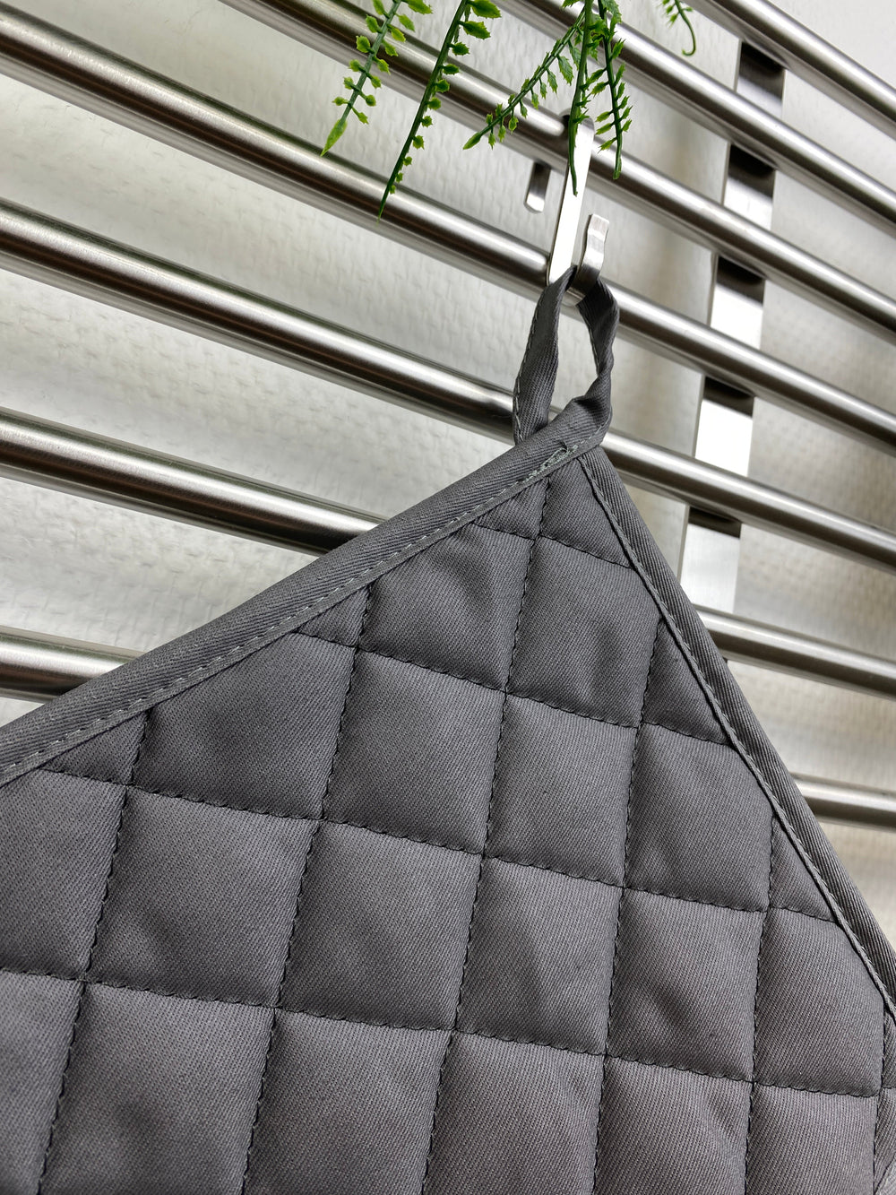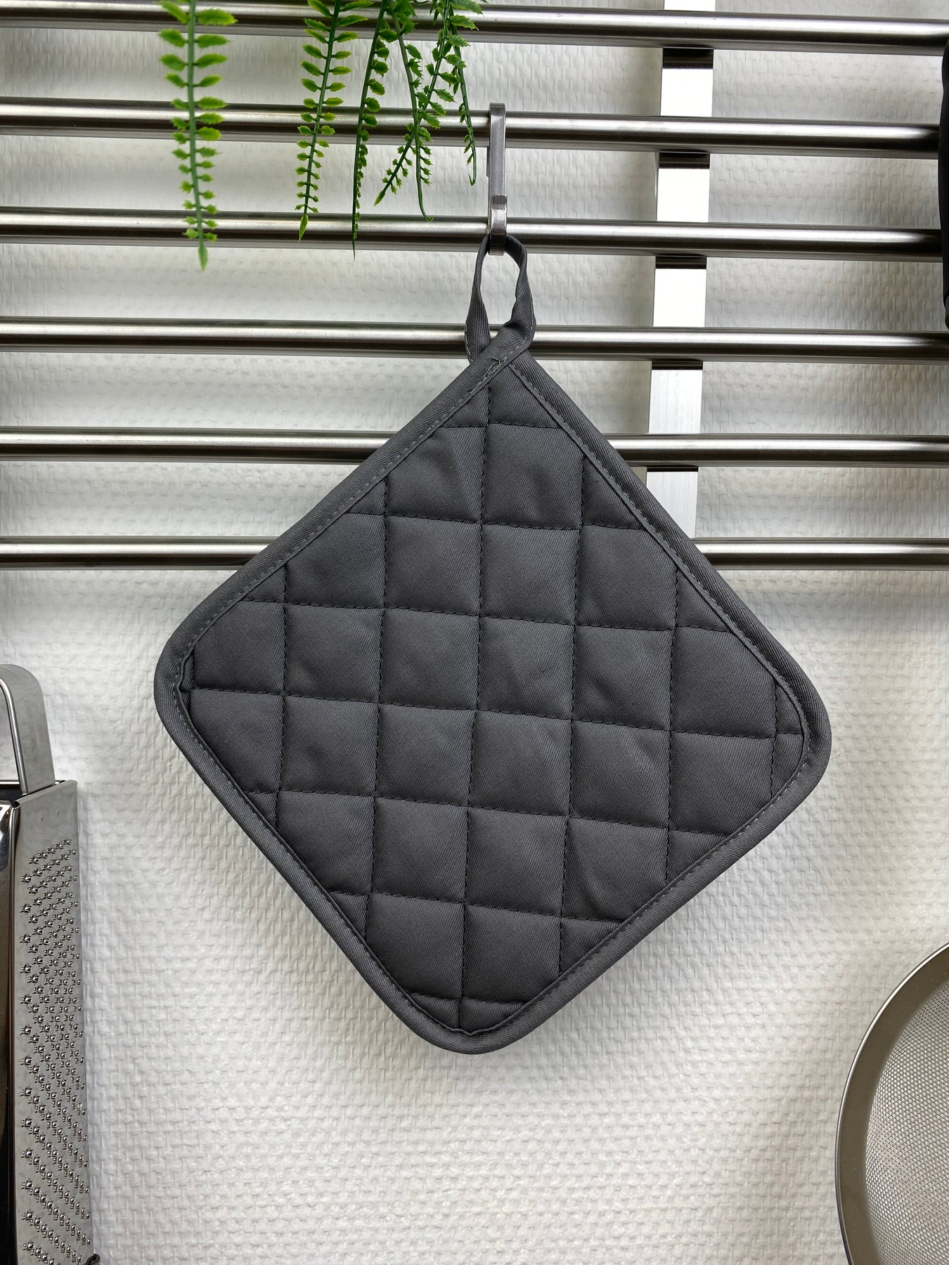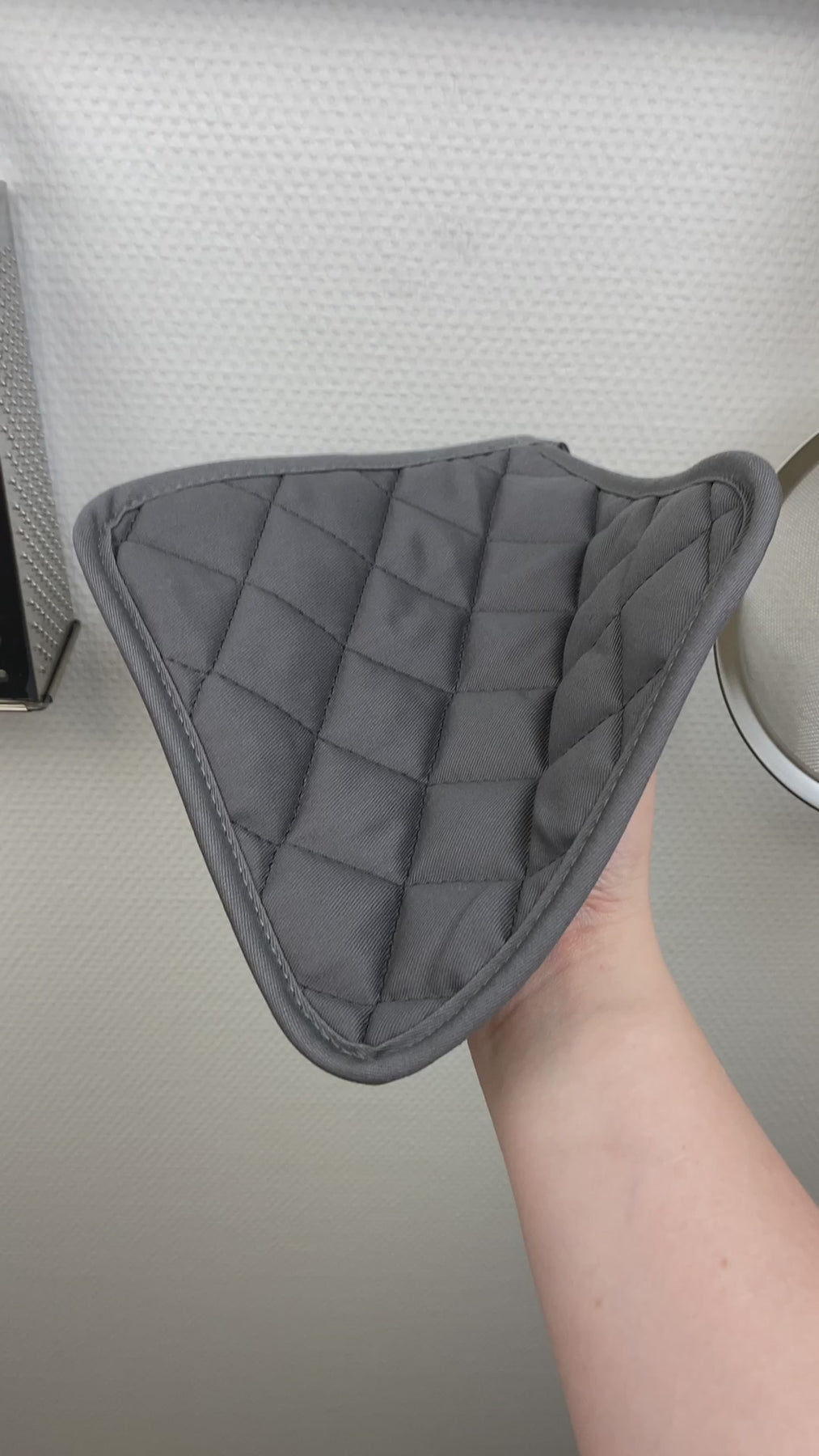 Klassisk och praktisk grytlapp i neutral grå färg. Perfekt för vardagsbruk i köket när du hanterar varma grytor, tallrikar eller bakplåtar.