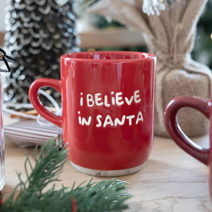 En charmig röd julmugg med textmotiv, perfekt för varma drycker och för att sprida julstämning under vintermånaderna.