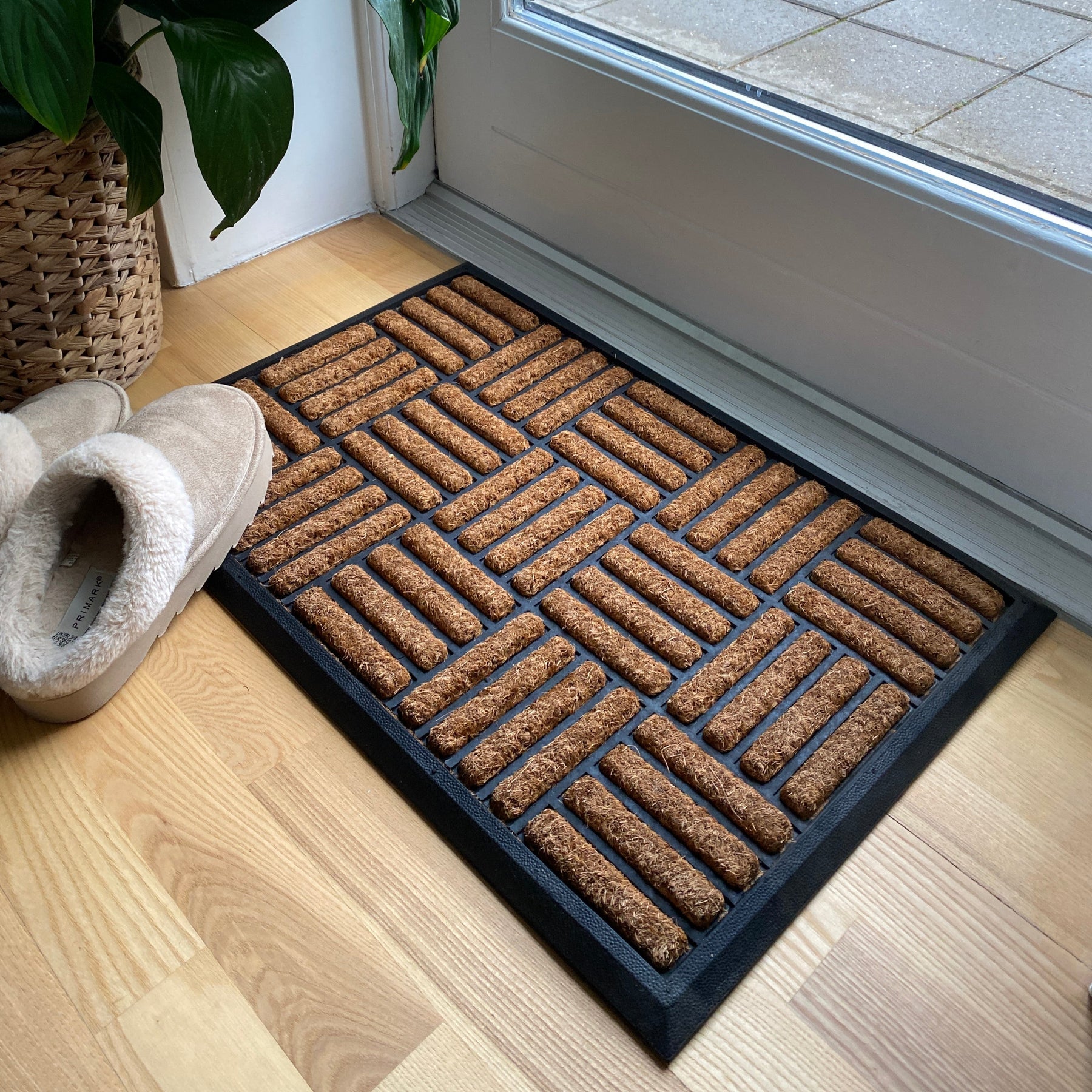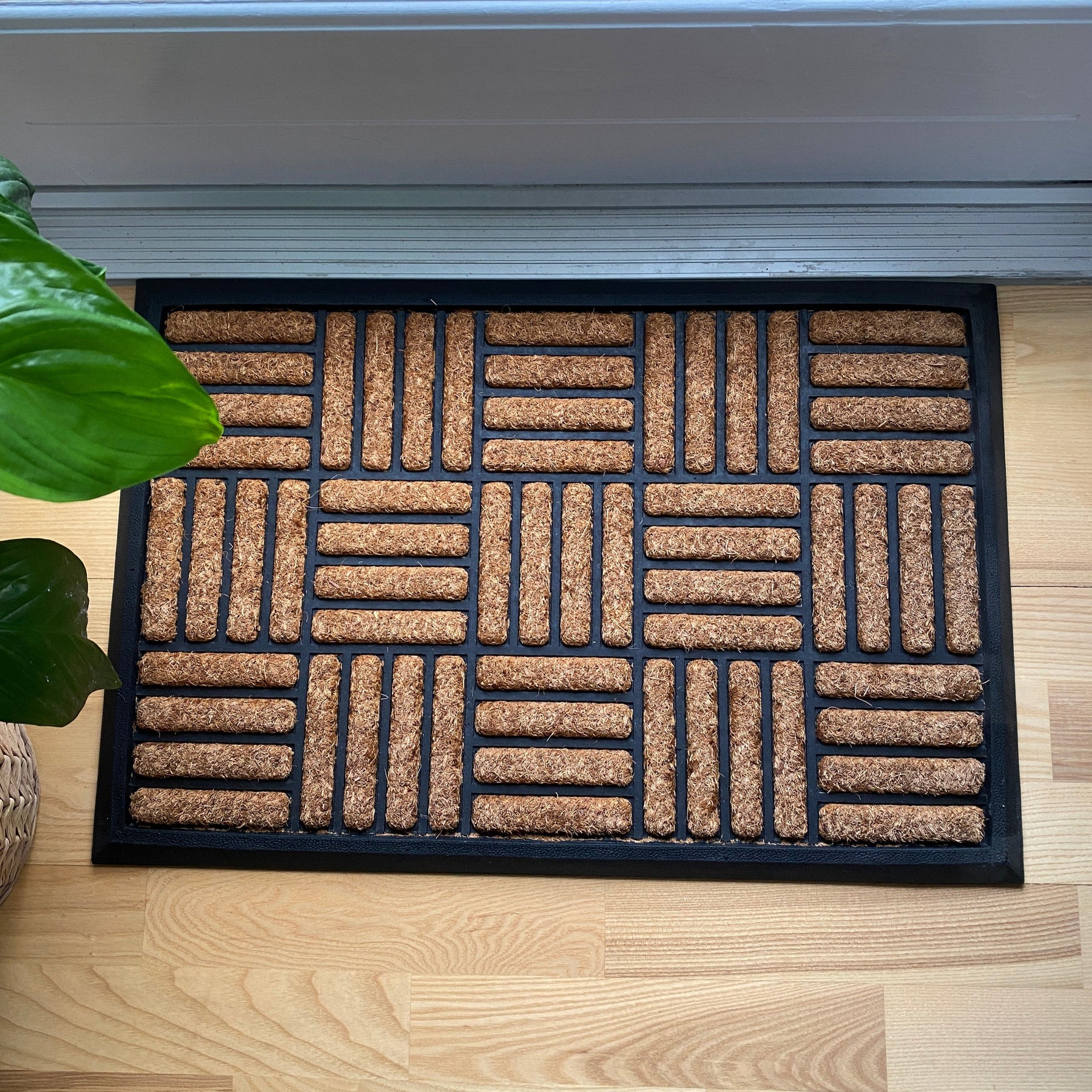Denna fyrkantiga dörrmatta kombinerar funktionalitet och stil. Gummibaksidan säkerställer att mattan sitter på plats och inte glider, medan det dekorativa mönstret ger en modern touch till din entré. Perfekt för att samla upp smuts och fukt från skor och hålla golvet rent.