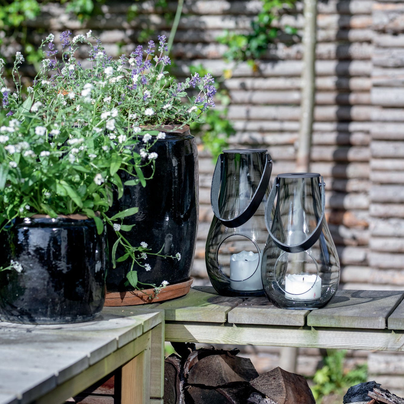 Holmegaards Design with Light-lykta i rökfärgat glas är en elegant dekoration för både inomhus- och utomhusbruk. Lyktan skapar en varm och mysig atmosfär med mjukt ljus, perfekt för att dekorera ett bord, en terrass eller en fönsterbräda. Den tidlösa skandinaviska estetiken gör den till ett stilfullt inslag i alla inredningar.