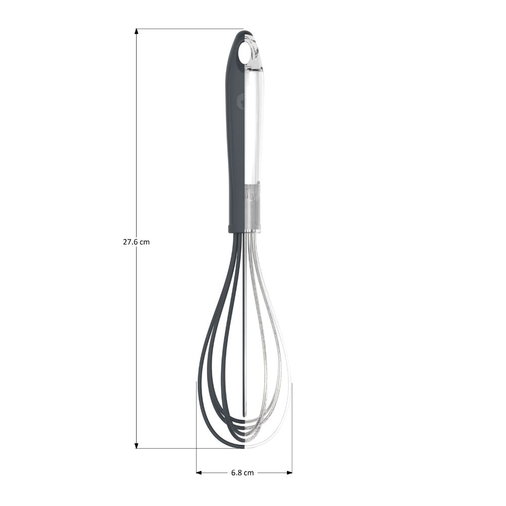 En mångsidig visp för köket, perfekt för desserter, gröt, dippsåser, dressingar, pannkakssmet och krämer. Den flexibla och formstabila designen gör den enkel att arbeta i skålar, grytor och stekpannor, medan den robusta stålkärnan säkerställer hållbarhet och stabilitet. Silikonbeläggningen skyddar ytor från repor. Med en längd på 27 cm ligger vispen bra i handen och är idealisk för dagligt bruk.