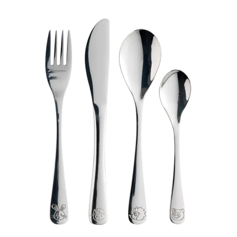 Aida - Barnbestick 4 delar - Rostfritt stål med djurgravyr