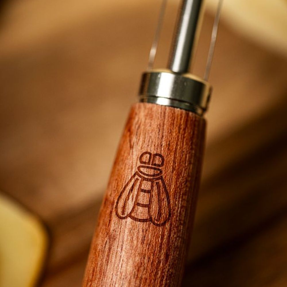 Laguiole by Hâws osthyvel i vackert rosenträ kombinerar klassisk design med funktionalitet. Bladet i rostfritt stål säkerställer ett exakt snitt, så att du enkelt kan skära både hårda och mjuka ostar. Det ergonomiska handtaget i äkta rosenträ ger ett bekvämt och säkert grepp. Med sex extra blad ingår ett verktyg som kommer att hålla i många år. Perfekt för servering vid ostbordet eller som en elegant present till ostälskaren.
