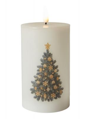 LED-blockljus 3D - Ø7,5x12,5 cm - julgran/kräm