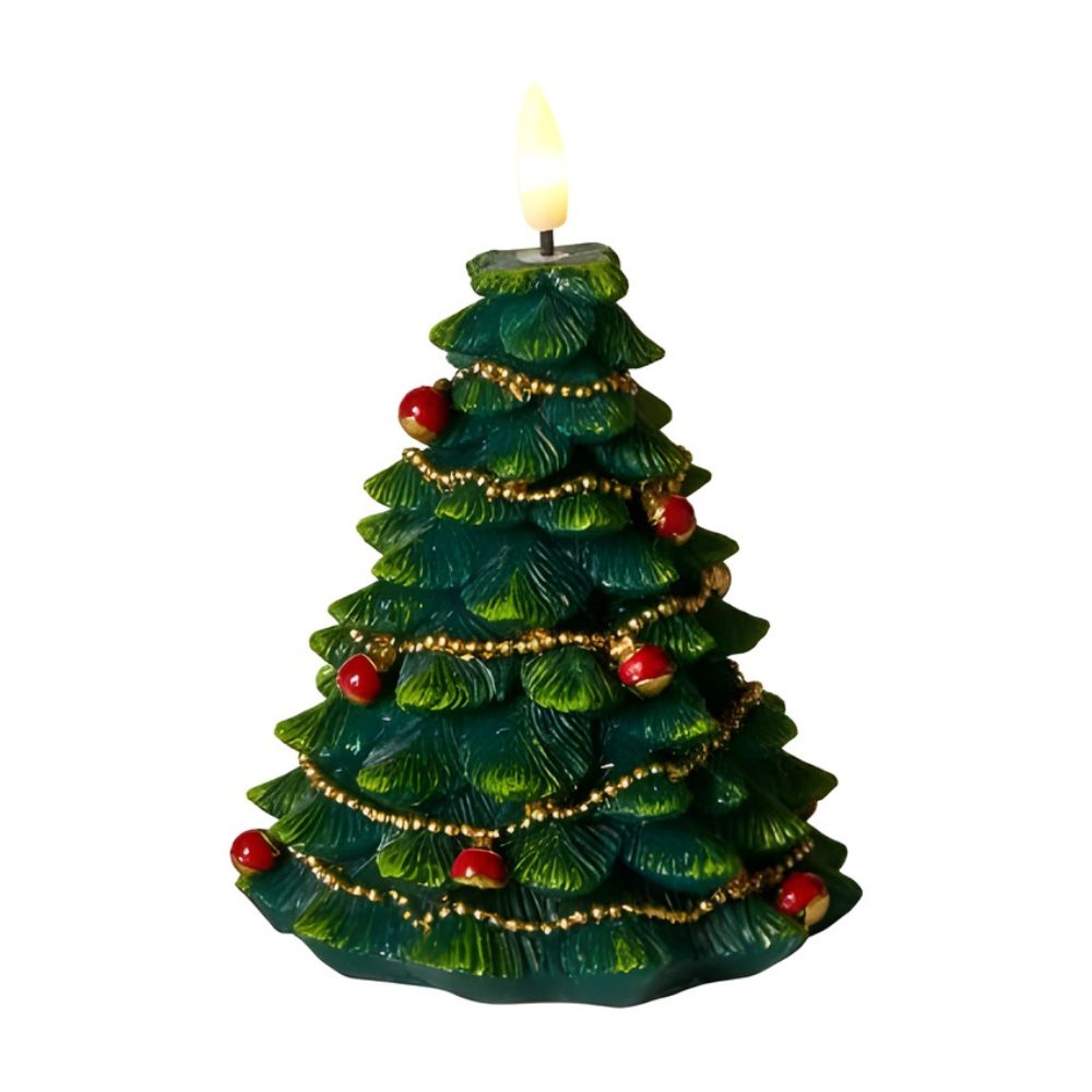 Skapa en mysig och stämningsfull jul med detta LED-vaxljus format som en julgran i en elegant grön färg. Ljuset är tillverkat av riktigt vax , vilket ger ett naturligt utseende och ett varmt, livfullt sken – helt utan brandrisk.