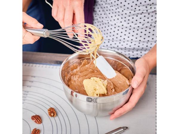 Vispen har en distinkt "ballongform" med 24 strängar som gör att du kan fånga luft och skapa lätta och fluffiga konsistenser i dina recept. Den är perfekt för att vispa vispgrädde, göra suffléer eller blanda ingredienser till kakor och desserter.