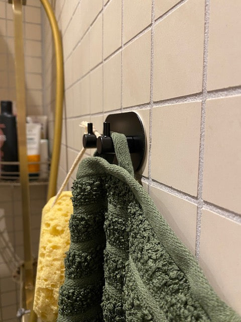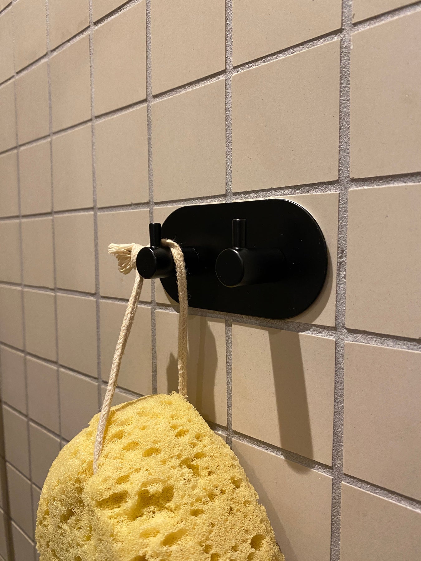 Självhäftande krok dubbel rostfritt stål svart - 10x5x3 cm