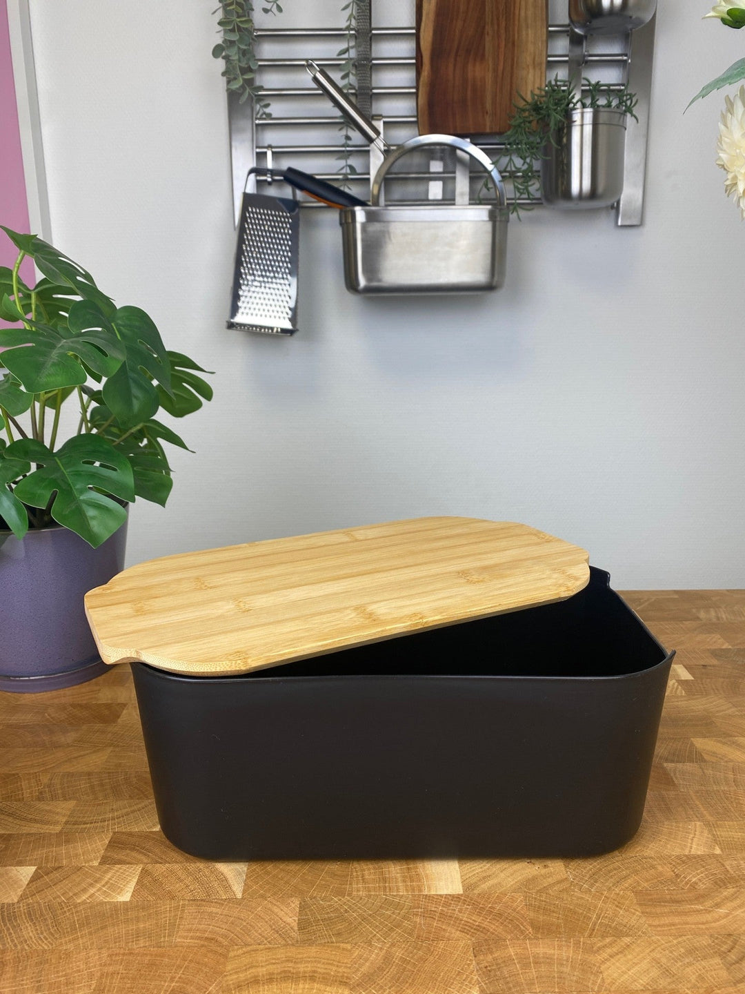 Conzept brödlåda svart plast med bambulock 33x18,5x12cm/4,5 L