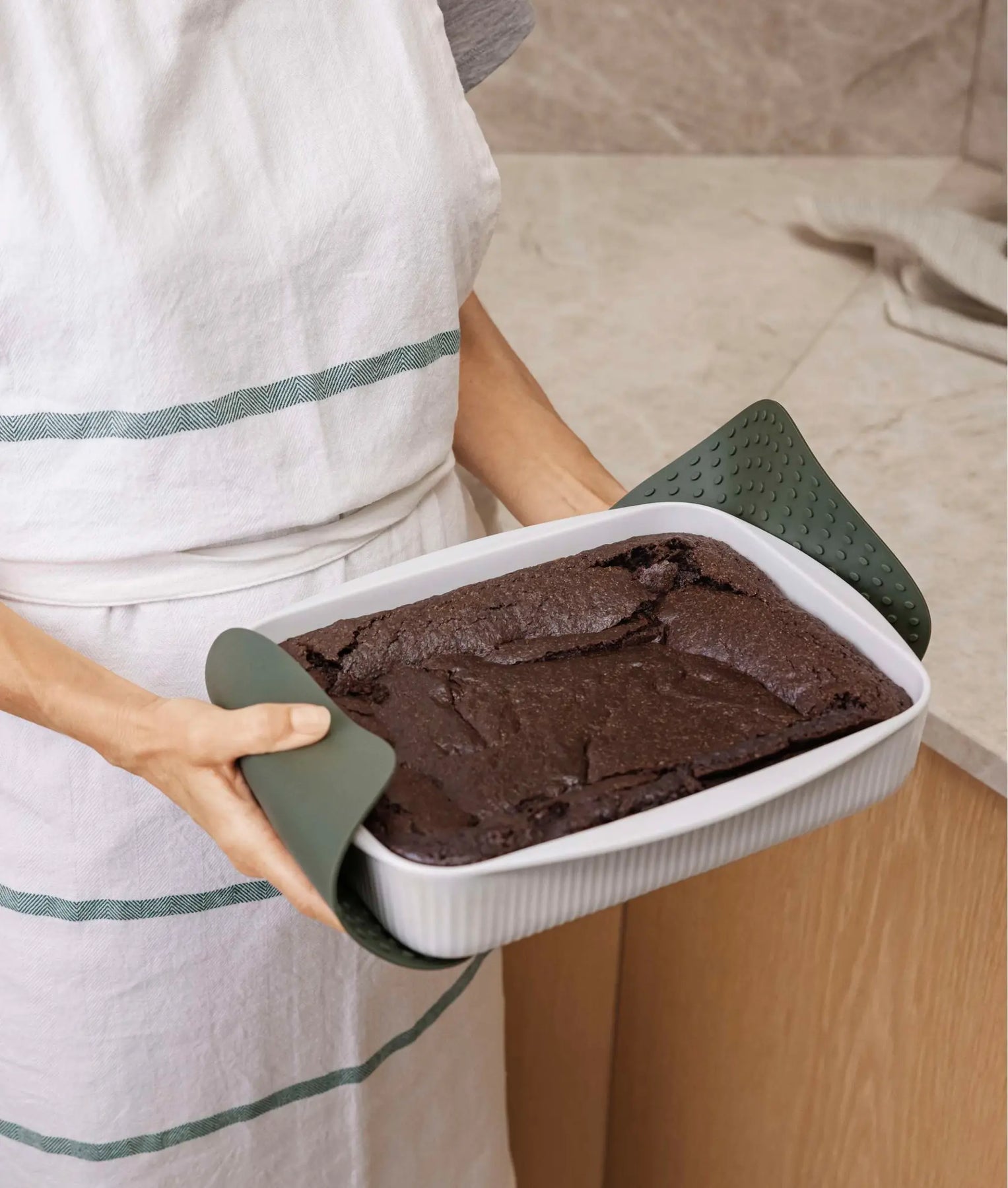 Uppnå optimal säkerhet och komfort i köket med dessa flexibla och funktionella Eva Solo Green Tools grytlappar . Tillverkade av högkvalitativt silikon ger de ett starkt grepp och skyddar dina händer från heta kastruller och stekpannor. De är också perfekta som underlägg för varma rätter.