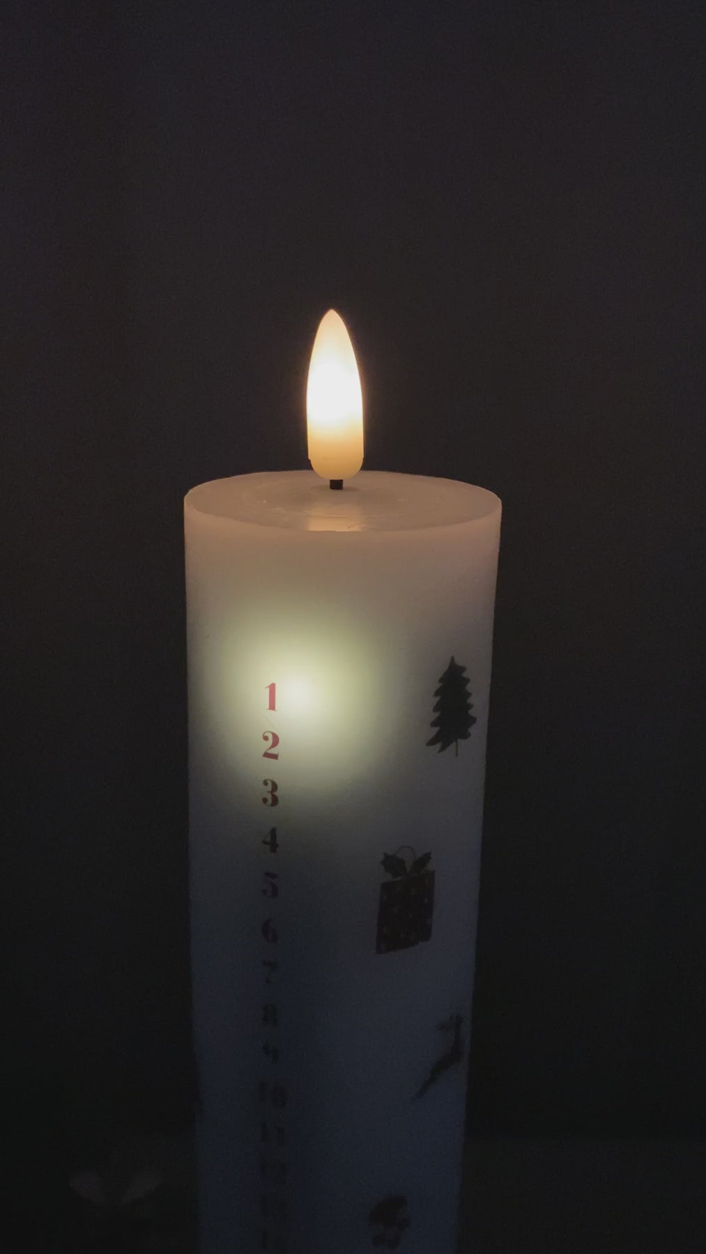 Detta LED-kalenderljus är tillverkat av vax och har en naturtro 3D-låga som ger ett varmt och mysigt sken under hela december. Ljuset är dekorerat med julgirlang och fungerar som ett vackert och säkert alternativ till det klassiska kalenderljuset. Med den medföljande fjärrkontrollen kan du enkelt tända och släcka det och välja mellan 6 eller 18 timmars drifttid, så att ljuset automatiskt upprepas varje dag. Perfekt för att skapa riktig julstämning – utan brandrisk och med maximal bekvämlighet.