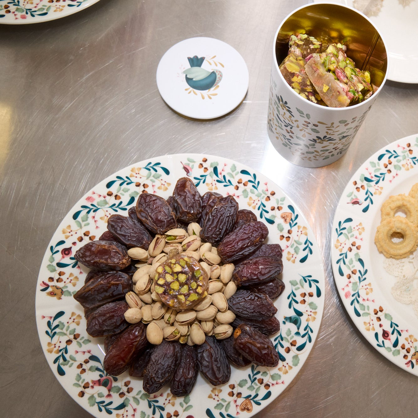Tallriken med en diameter på 27 cm är prydd med en elegant dekorativ kant med motiv inspirerade av nordisk natur och klassiska juldekorationer – löv, bär, järnek, fåglar, honungshjärtan, glasdekorationer och ekollon bildar en vacker ranka som ramar in den rena, vita mitten. Resultatet är ett uttryck som kombinerar minimalistisk dansk design med värme och personlighet .