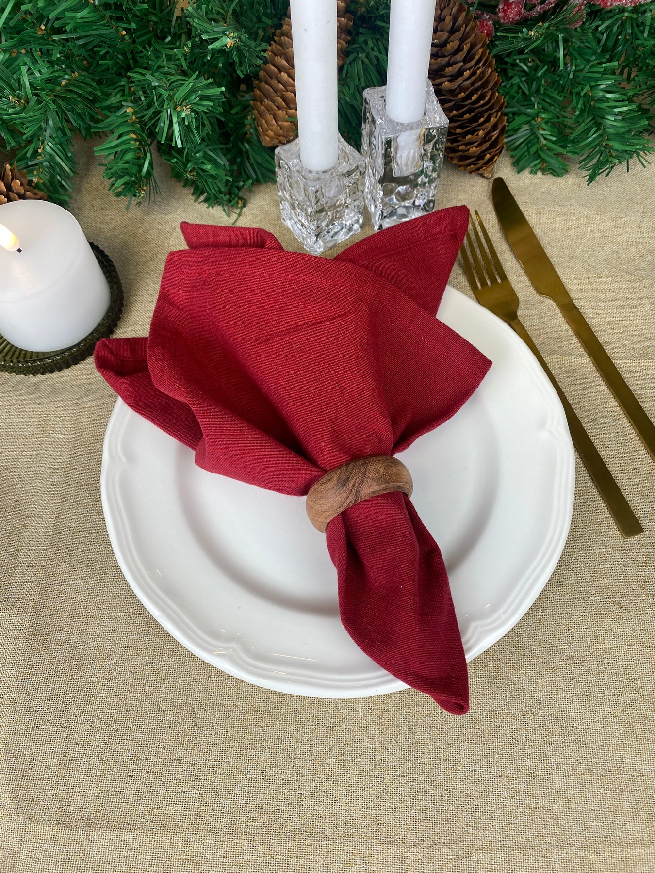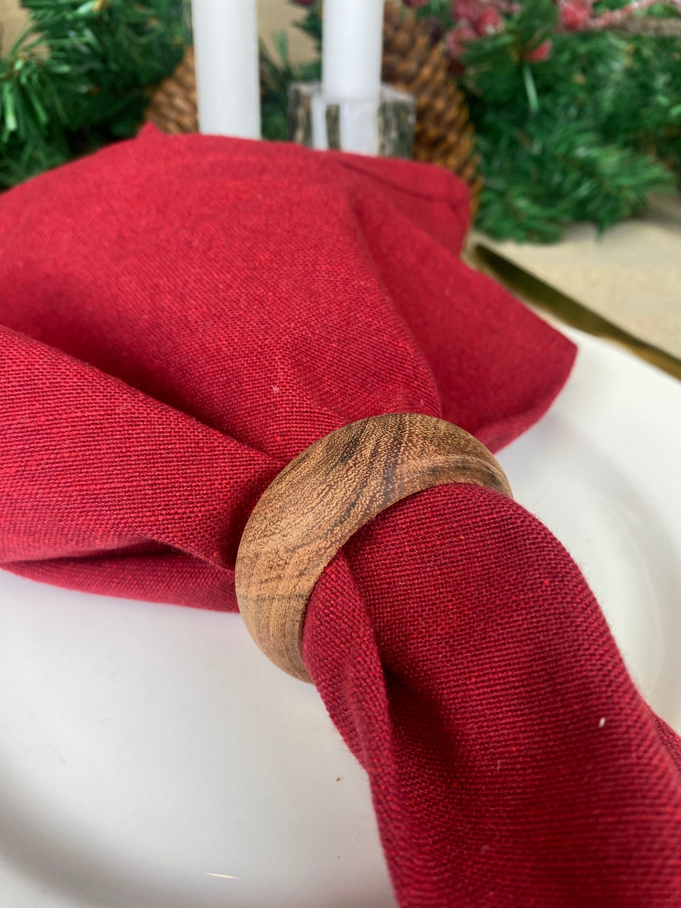 Servettringen är tillverkad av akaciaträ, vilket ger en varm och inbjudande känsla till din dukning. Den naturliga färgen och trämönstret ger en autentisk och rustik atmosfär.