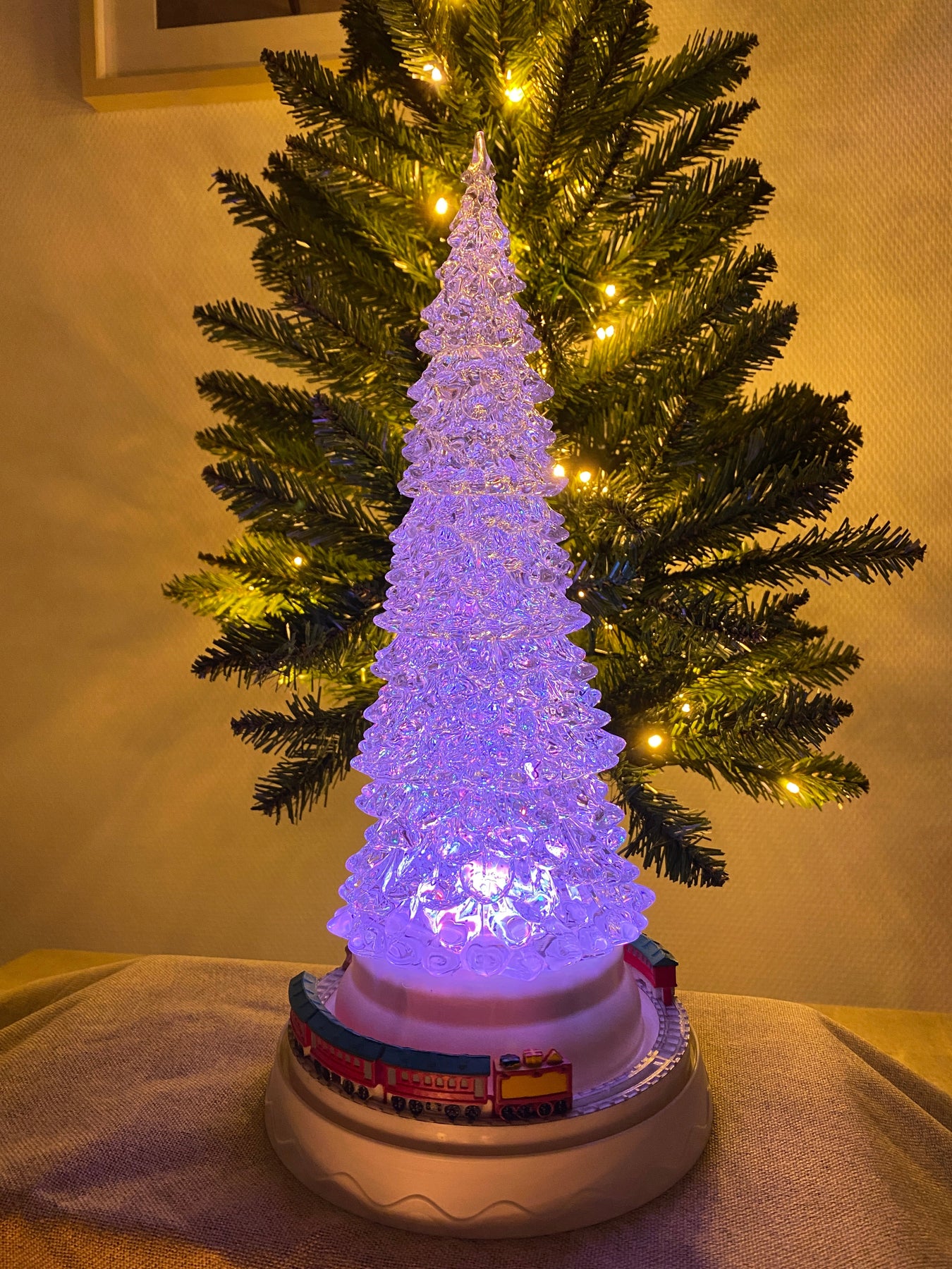 Conzept julgran med färgflimmer - roterande tåg och musik 16x33,8 cm