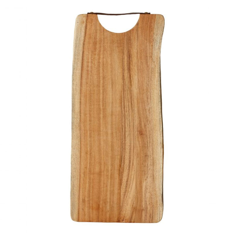 Denna vackra skärbräda i oljat akaciaträ med läderhandtag är perfekt för dig som vill ha en vacker och praktisk skärbräda.