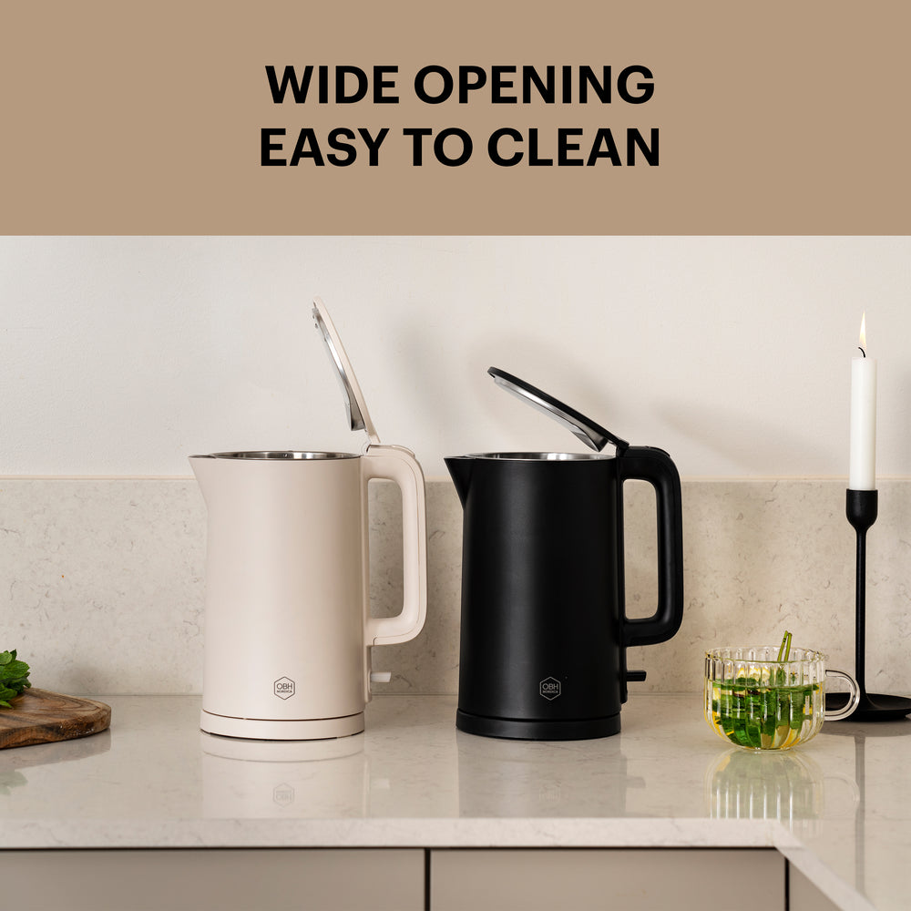 OBH Nordica Thermo Protect elektrisk vattenkokare är den idealiska lösningen för dig som vill ha både funktionalitet och säkerhet i köket. Med sin bekväma hällpip som förhindrar dropp och den dubbelväggiga konstruktionen som håller utsidan sval, är denna elektriska vattenkokare designad för att ge dig en bättre upplevelse varje gång du kokar vatten.
