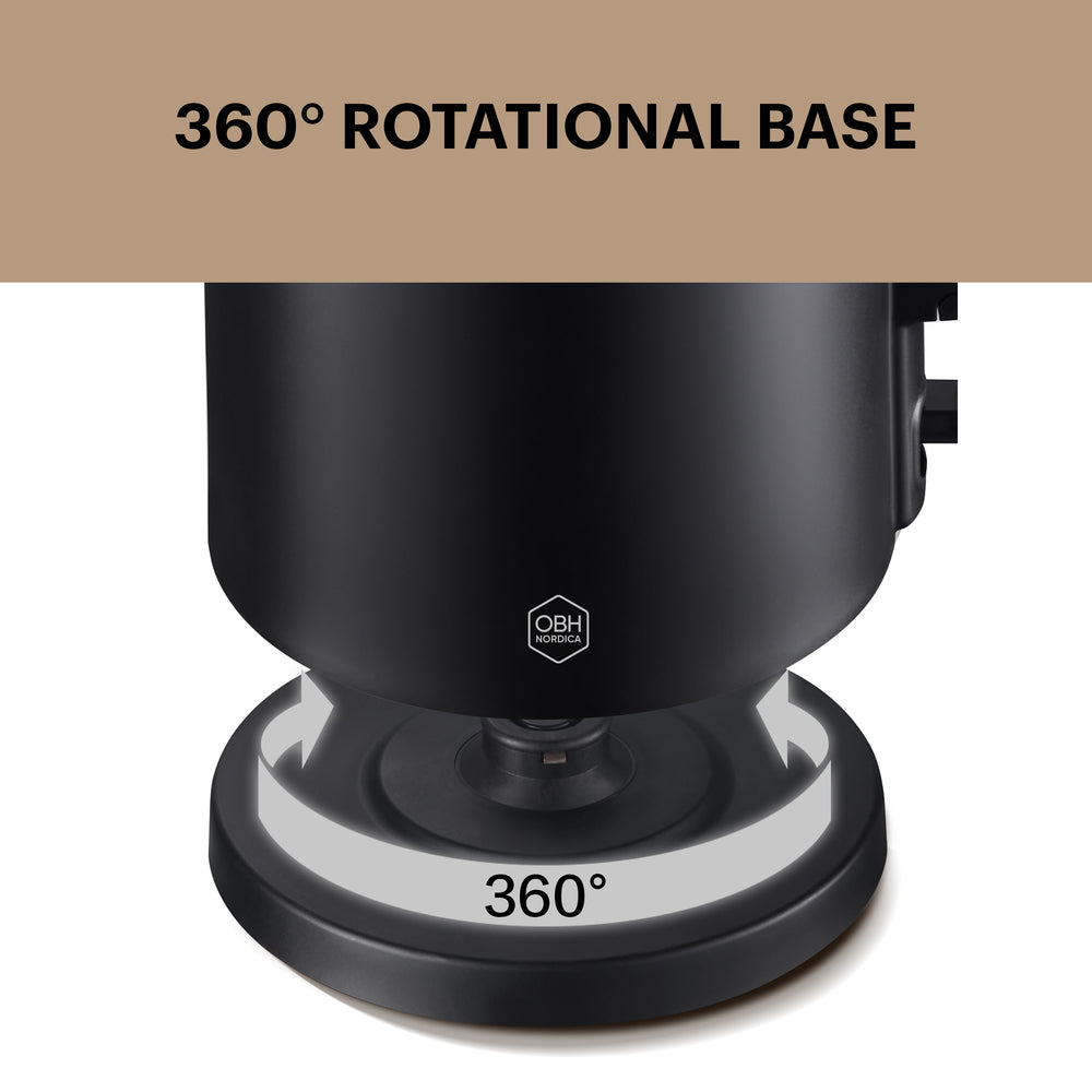 • 360° roterande bas: Gör det enkelt att placera och ta bort vattenkokaren från basen, oavsett vilken vinkel du använder.