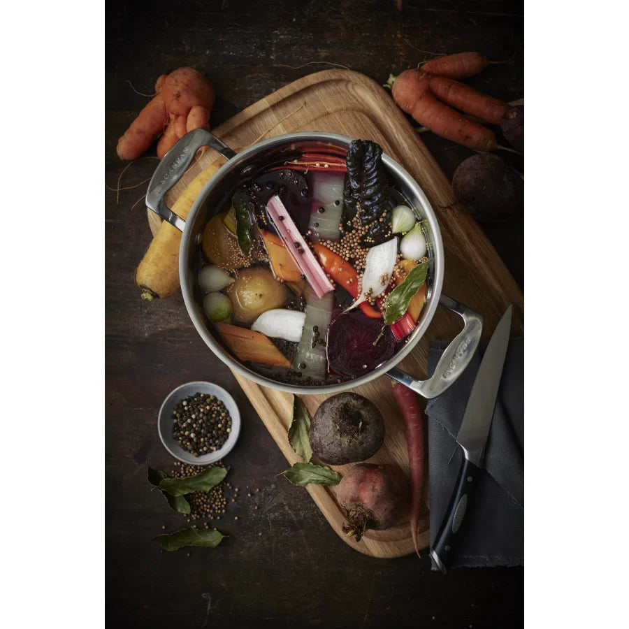 Scanpans Impact Pot med lock i storleken 4,8 liter / 24 cm är en mångsidig och tålig gryta som är idealisk för att tillaga större rätter och allt från ris till sjudrätter.