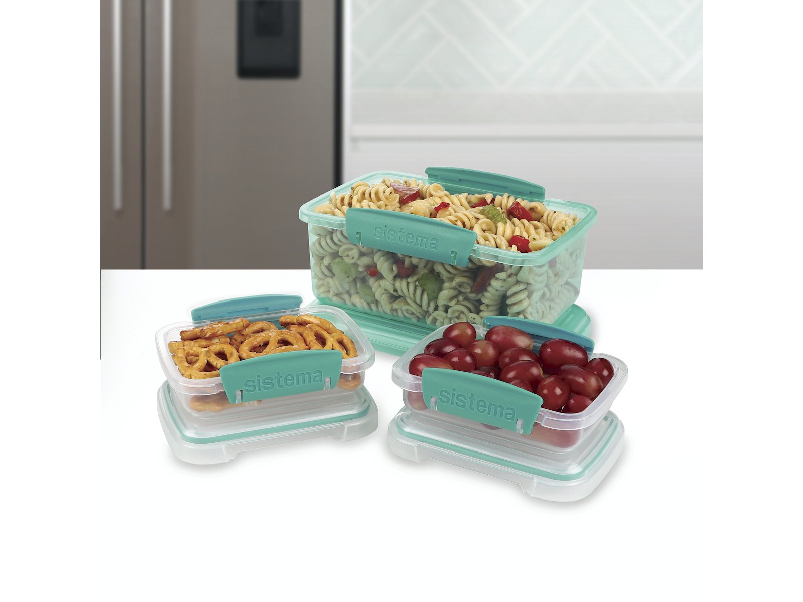 Praktisk och mångsidig förvaringsset från Sistema® som gör det enkelt att hålla ordning i kyl, frys och kökslådor. De rektangulära behållarna är utformade för optimalt utnyttjande av utrymmet och är idealiska för både vardagsbruk och matlagning.