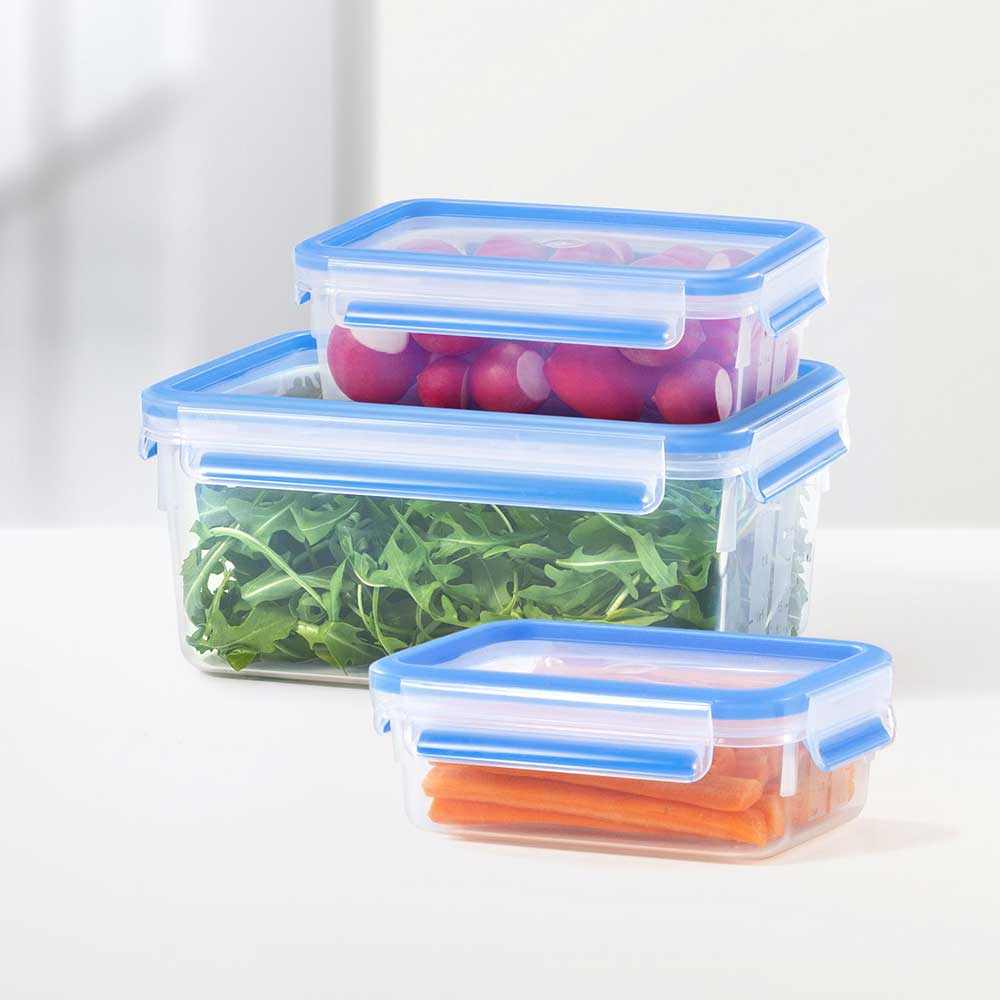 Tefals MasterSeal FRESH-serie med förvaringslådor är superpraktiska och av högsta kvalitet, eftersom de är tillverkade i Tyskland. De säkerställer att din mat håller sig fräsch länge och är 100% vätsketäta och absorberar inte lukt eller smak utifrån. De är tillverkade av livsmedelsgodkänd BPA-fri plast och har fått ett Baby Care-certifikat för förvaring av barnmat. Behållarna stängs med ett enkelt klicksystem. Frys- och mikrovågssäkra. (kom ihåg att locket måste vara något öppet vid användning i mikrovågsugn)