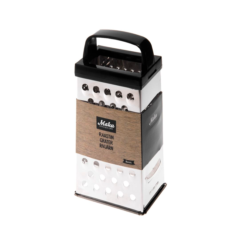 MAKU rivjärn i rostfritt stål är en nödvändighet i alla kök som vill ha ett praktiskt och mångsidigt verktyg för att riva och skiva mat. Detta rivjärn är en funktionell och hållbar lösning för att riva och skiva en mängd olika ingredienser och kommer att vara ett ovärderligt verktyg i din matlagning.