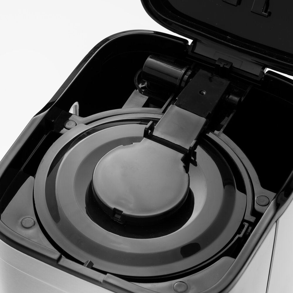 Kaffemaskinen har en praktisk och lättläst LED-display som visar aktuell tid och låter dig ställa in timern så att kaffet bryggs vid en viss tidpunkt. Det innebär att du alltid kan ha en kopp färskt kaffe redo när du behöver det.