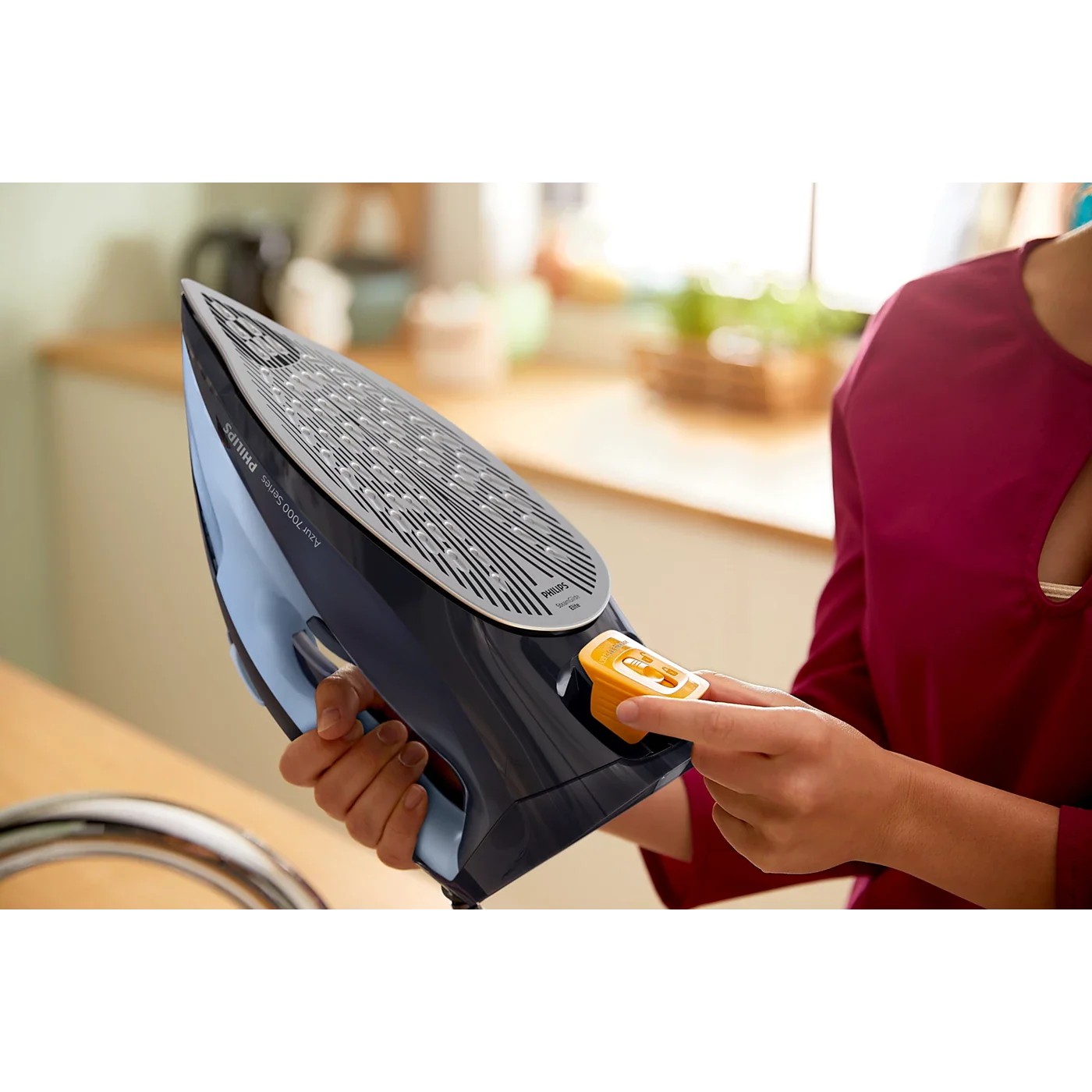 Den exklusiva SteamGlide Elite-stryksulan ger optimal glid och maximal reptålighet , så att du kan stryka smidigt och skonsamt på alla tyger. Den stora vattentanken på 300 ml innebär färre påfyllningar, medan Quick Calc Release-systemet gör det enkelt att hålla strykjärnet fritt från kalkavlagringar och säkerställer långvarig prestanda.