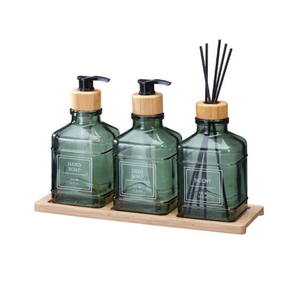 Sæbedispenser sæt i glas 4 dele - assorteret farver