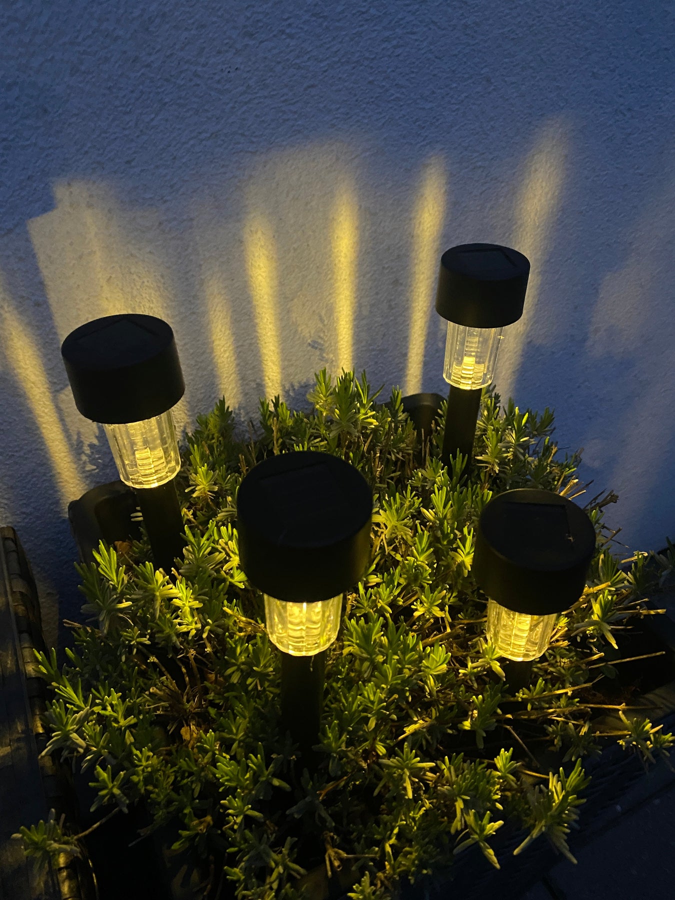 • Med spik: Varje lampa levereras med en spik , så den kan enkelt placeras i marken i trädgården, längs gångar eller i rabatter.
