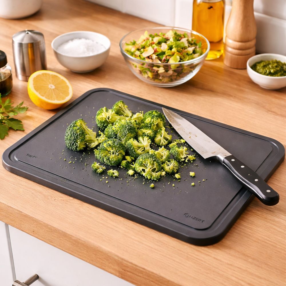 En skärbräda med saftspår är smart i det moderna köket. Spåret fångar upp juice och vätska från kött, frukt och grönsaker så att det inte rinner ut på köksbänken. Detta gör städningen enklare och mer hygienisk vid matlagning. Saftspår är särskilt bra när man skär saftiga saker som tomater eller tillagning av kött. De hjälper också till att hålla ytan torr, så att du har bättre grepp om knivar när du använder dem. Skärbrädor med saftspår är både praktiska och rena, vilket gör dem till ett utmärkt verktyg för alla som älskar att laga mat.